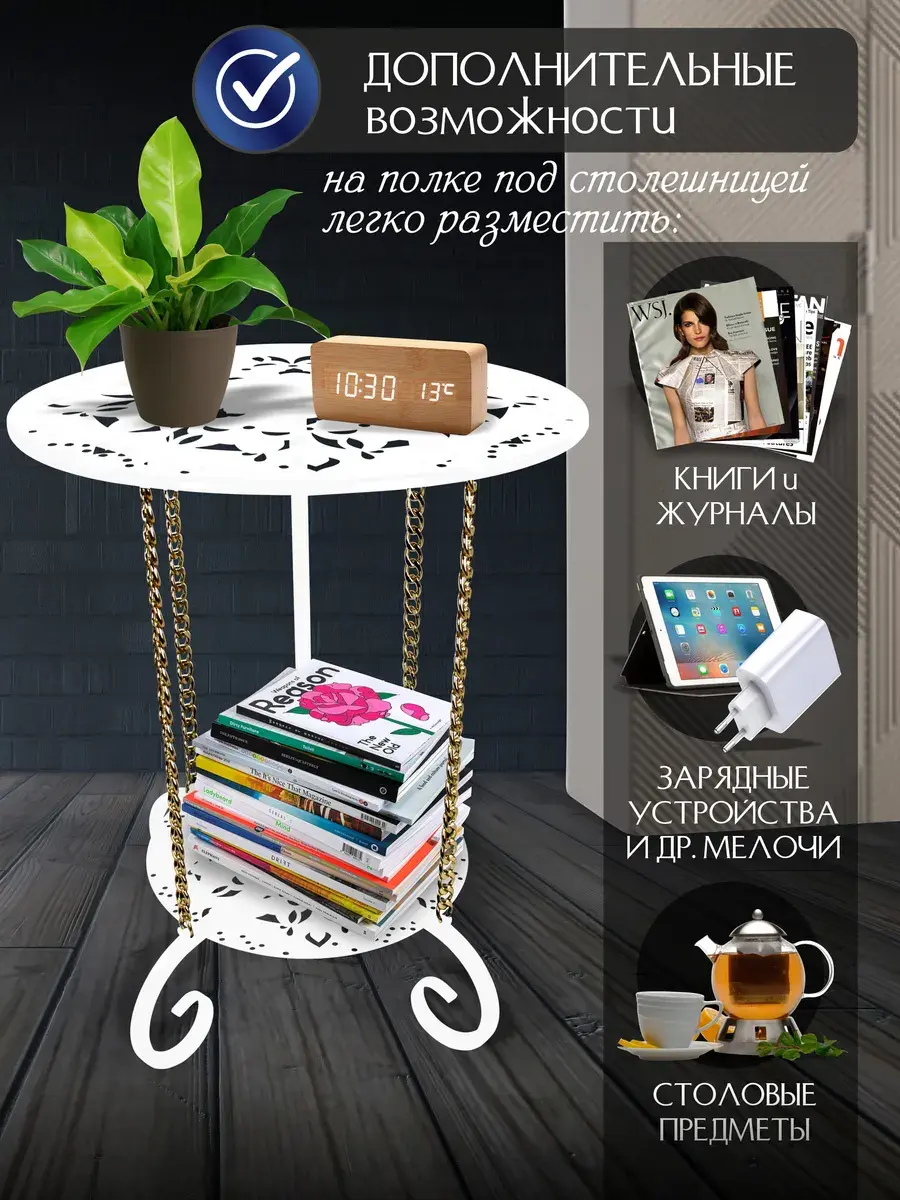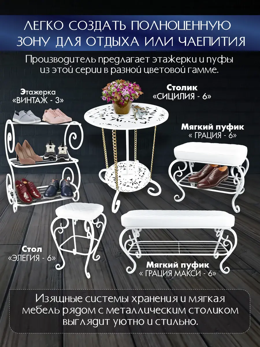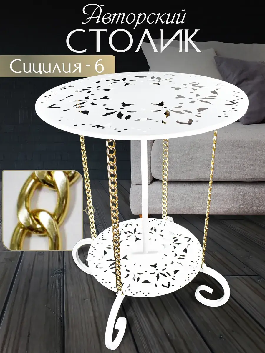 Авторский декоративный столик Сицилия-6 от ЭКОГРУПП – это уникальное сочетание стиля и функциональности, идеально подходящее для создания уютного и стильного интерьера в гостиной, кафе, ресторане или салоне красоты. Столик выполнен из прочных металлических материалов, что обеспечивает его долговечность и надёжность. Его круглая форма и винтажный дизайн добавят вашему пространству уникальный шарм и элегантность. Несмотря на свою компактность, столик обладает достаточным рабочим пространством для журналов, книг или любых других предметов. При его покупке вам потребуется небольшая сборка, что позволяет адаптировать столик под ваши индивидуальные потребности и предпочтения. Сицилия-6 – это не просто мебель, это часть вашего стиля, которая подчеркнёт ваш вкус и умение поддерживать атмосферу в вашем пространстве.