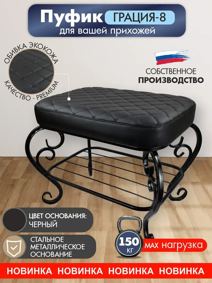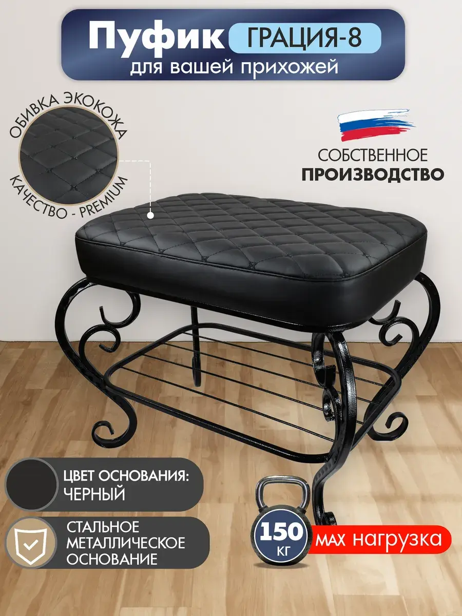 Основные характеристики пуфика включают качественные материалы, такие как экокожа , которая придаёт изделию элегантный вид и приятные тактильные ощущения. Металлические элементы обеспечивают надежность конструкции, а металлические ножки добавляют стилю и стойкости. Размеры пуфика позволяют легко разместить его даже в ограниченном пространстве, что делает его отличным выбором для небольших комнат или балкона.