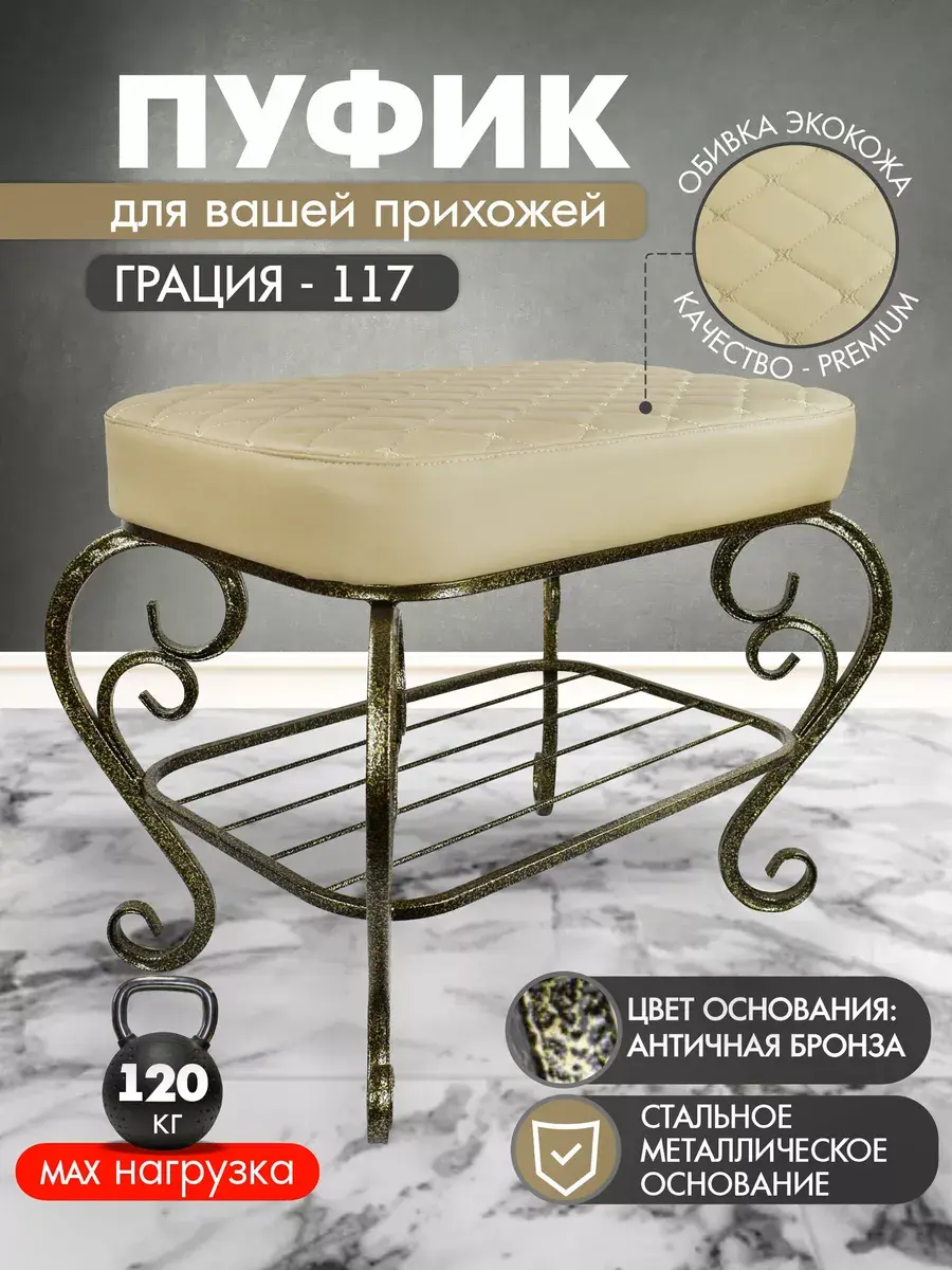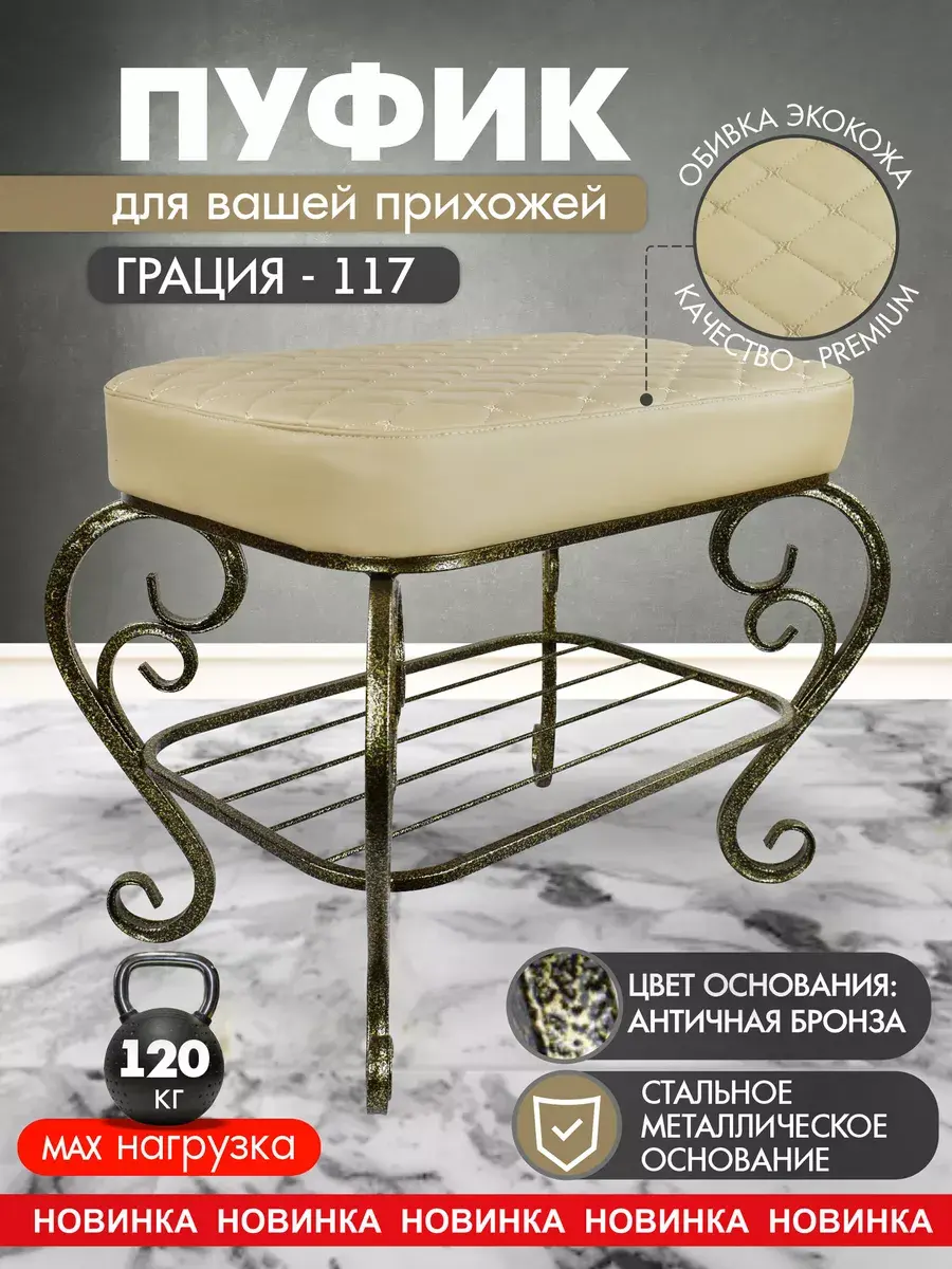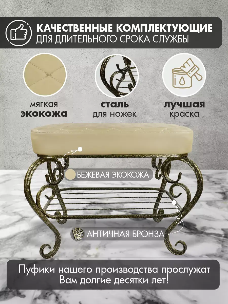Практичная красота надолго - Пуфик на ножках российского производства имеет прочное стальное основание, продуманную конструкцию и безупречную сборку, поэтому прослужит до 20 лет и будет выглядеть как новый.