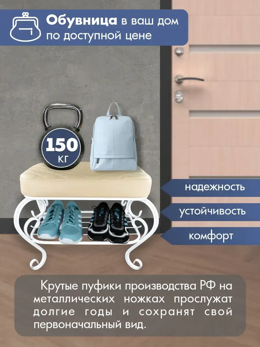 Выбирайте удобный, изящный и компактный пуф-банкетку для прихожей, гостиной, спальни или детской, чтобы украсить интерьер или сделать подарок на юбилей, свадьбу, день рождения или новоселье.