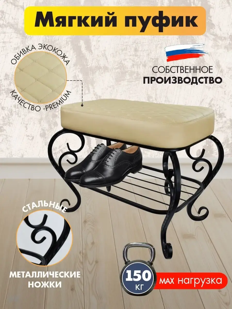 Выбирайте удобный, изящный и компактный пуф-банкетку для прихожей, гостиной, спальни или детской, чтобы украсить интерьер или сделать подарок на юбилей, свадьбу, день рождения или новоселье.