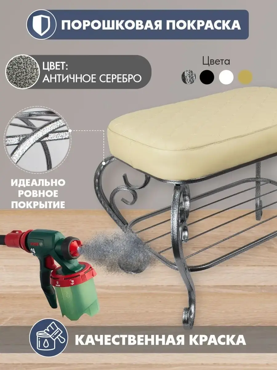 Стойкость к износу: прочная металлическая основа, качественное сиденье и современное порошковое покрытие уберегают мягкий пуфик от царапин, ржавчины и других дефектов.