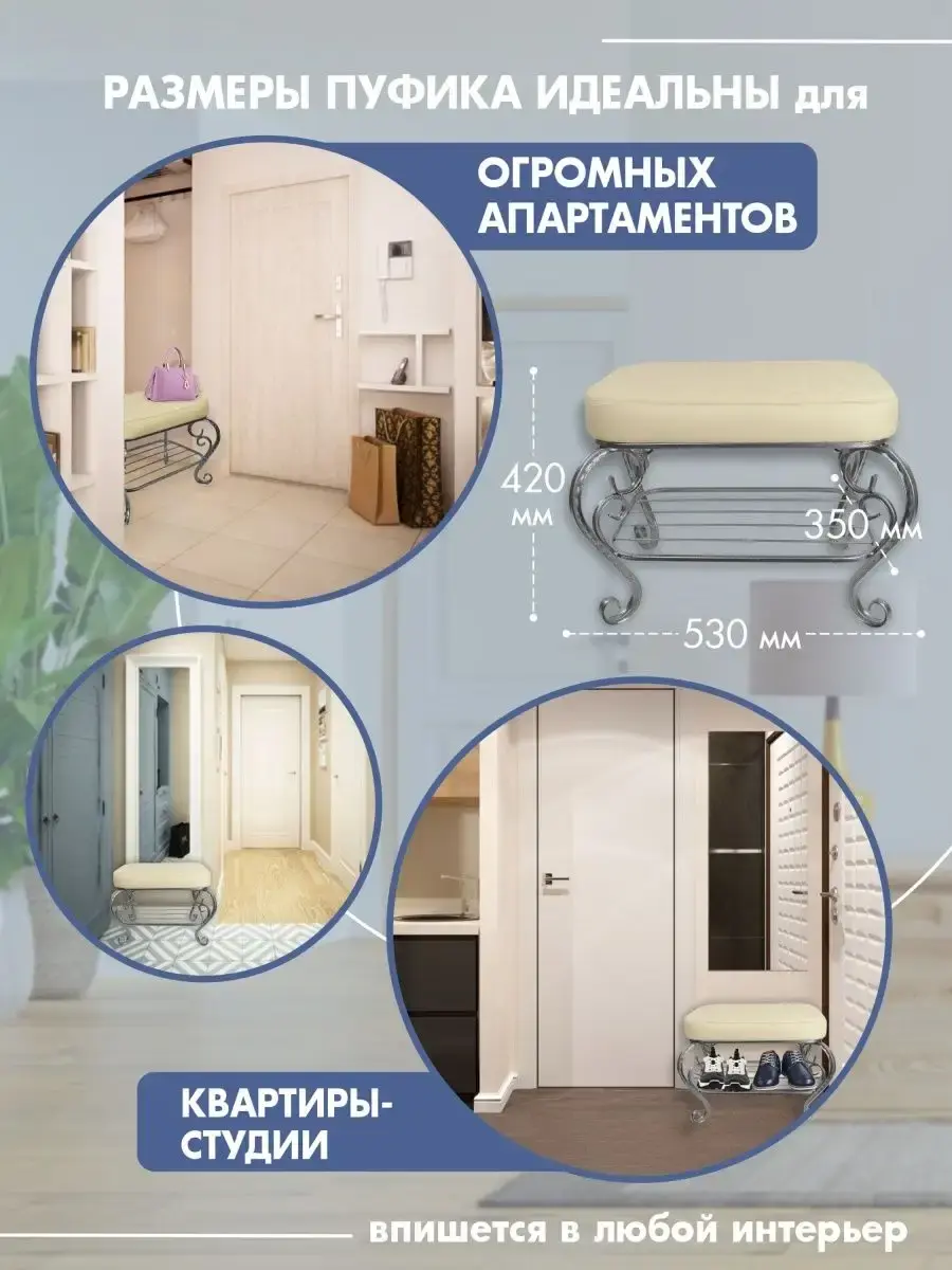 Универсальность для любых помещений: широкий модельный ряд в разных цветовых решениях предоставляет свободу выбора, позволяя подобрать гармоничное сиденье в прихожую, детский пуфик или пуф для гостиной.