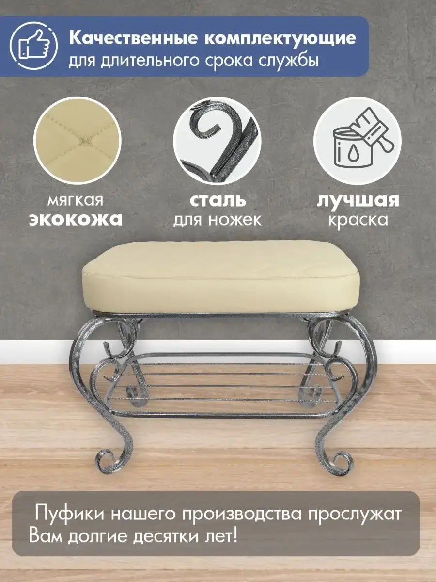 Выбирайте удобный, изящный и компактный пуф-банкетку для прихожей, гостиной, спальни или детской, чтобы украсить интерьер или сделать подарок на юбилей, свадьбу, день рождения или новоселье.