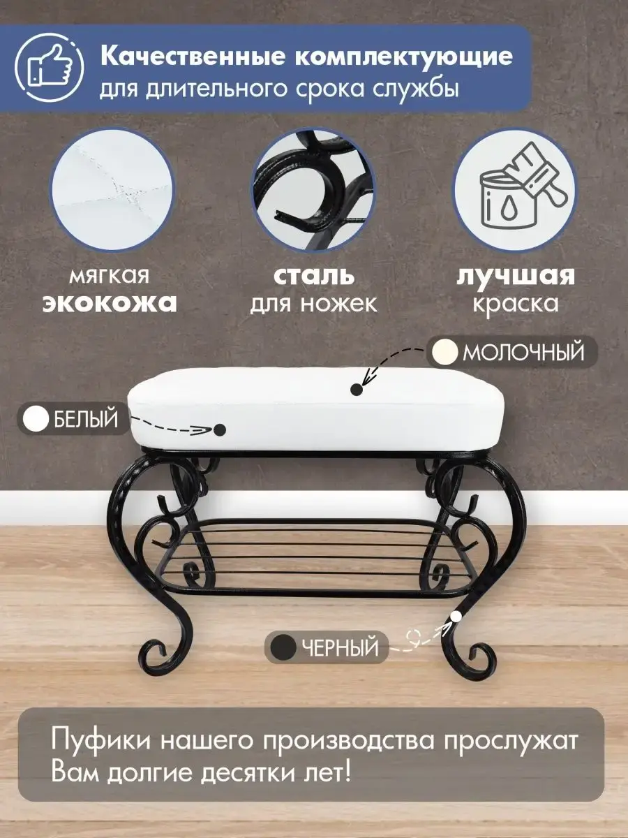 Выбирайте удобный, изящный и компактный пуф-банкетку для прихожей, гостиной, спальни или детской, чтобы украсить интерьер или сделать подарок на юбилей, свадьбу, день рождения или новоселье.