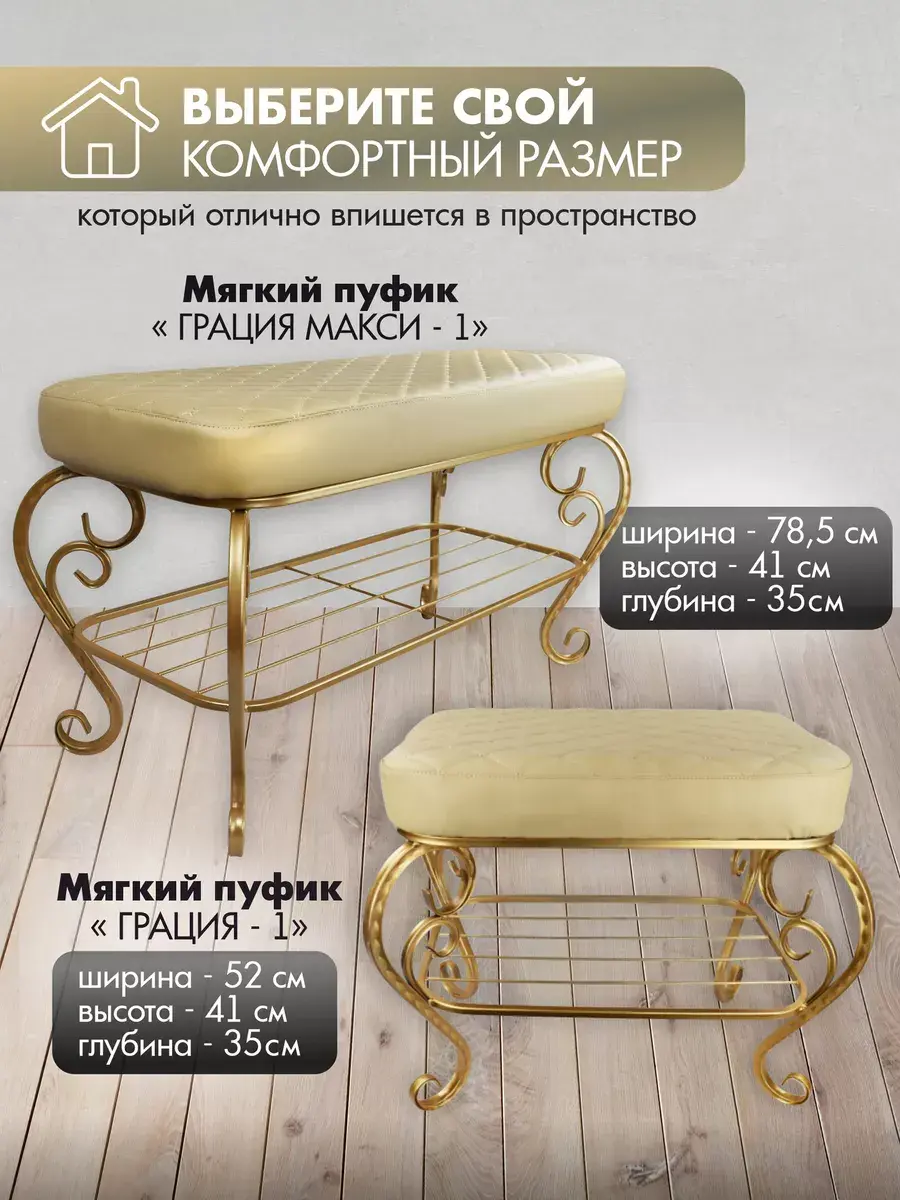 Выбирайте удобный, изящный и компактный пуф-банкетку для прихожей, в гостиную, спальню или в детскую, чтобы декорировать интерьер или сделать подарок на юбилей, свадьбу, день рождения или новоселье.