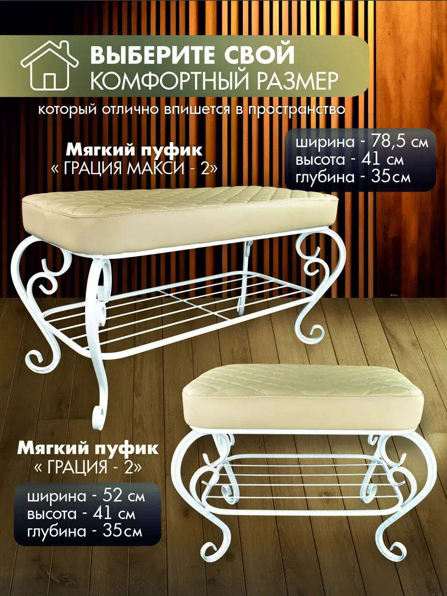 Выбирайте удобный, изящный и компактный пуф-банкетку для прихожей, в гостиную, спальню или в детскую, чтобы декорировать интерьер или сделать подарок на юбилей, свадьбу, день рождения или новоселье.