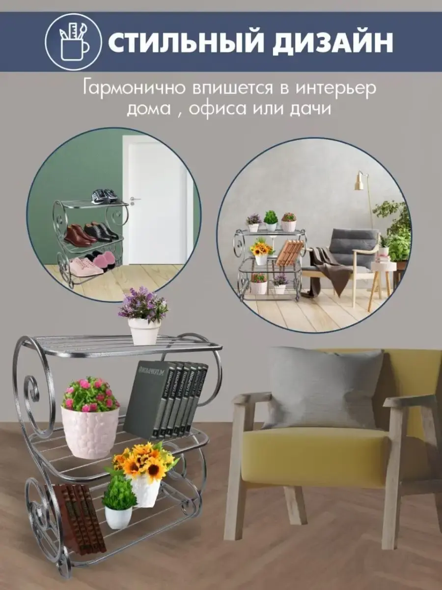 Стильная обувница Винтаж-7 Антик серебро от ЭКОГРУПП - это изысканное дополнение к вашему интерьеру, которое сочетает в себе функциональность и эстетику. Эта обувница выполнена из высококачественного металла, что обеспечивает ей долговечность и надёжность. Она оснащена тремя полками, предоставляя достаточно места для хранения обуви, а также других аксессуаров. Уникальный антикварный серебристый оттенок добавит уют и стиль в любую комнату, делая её идеальным выбором для любителей классического и элегантного дизайна. Благодаря отсутствию необходимости в сборке, обувница Винтаж-7 Антик серебро готова к использованию сразу после приобретения, делая её идеальным решением для тех, кто ценит удобство и красоту.