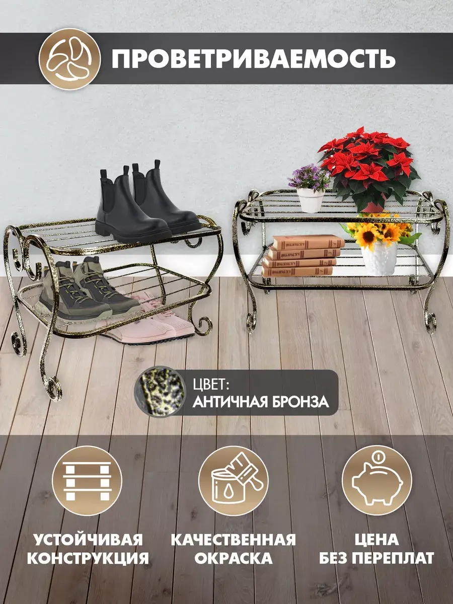 Обувница от ЭКОГРУПП – идеальное решение для организации пространства в гардеробной, на даче или в прихожей. Этот высококачественный предмет мебели выполнен из прочных металлических материалов, обеспечивающих долговечность и надежность. В ней предусмотрено два удобных полока, что позволяет разместить обувь различных размеров и стилей. Особенностью данной обувницы является отсутствие необходимости в сборке, что значительно упрощает процесс установки и использования. Благодаря своему универсальному дизайну, она идеально впишется в любое интерьерное пространство, обеспечивая при этом оптимальное хранение обуви и сохранение порядка в доме.