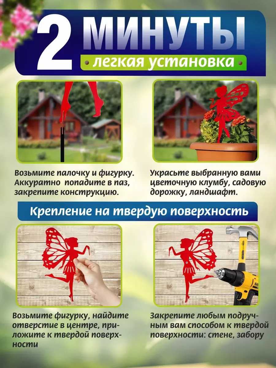 ● Сократить затраты на украшение сада. В комплекте 3 модели и в подарок одна фигурка из стали в виде бабочки.