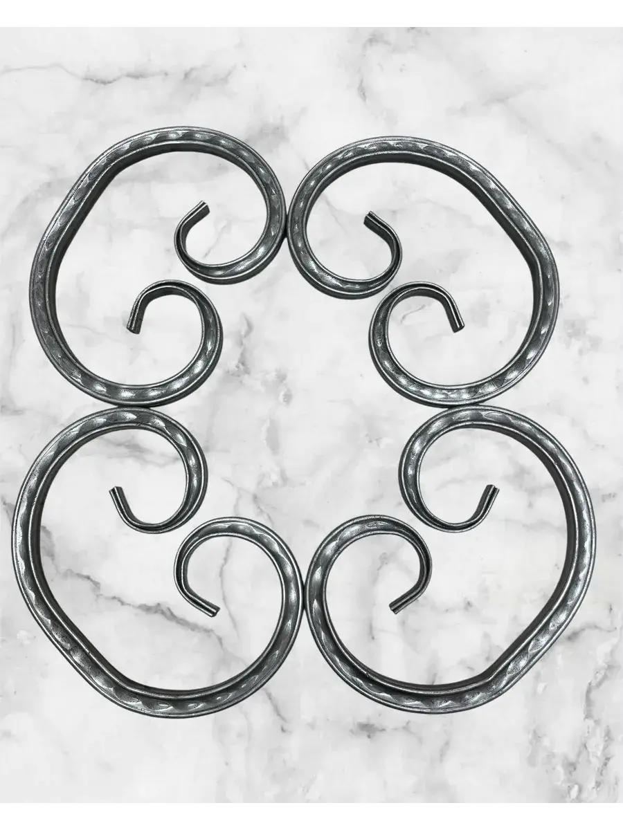 Набор кованых элементов "Бублик" станет прекрасным дополнением к любому саду или ландшафтному дизайну. Четыре стильных элемента в сером цвете добавят изысканности и утонченности вашим клумбам, дорожкам или террасам. Кованые элементы "Бублик" легко монтируются и прослужат долгие годы, сохраняя свой первоначальный вид. Их лаконичный дизайн впишется в любой стиль оформления, создавая гармоничную и завершенную композицию. Украсьте свой сад этими элегантными деталями и наслаждайтесь красотой и уютом.