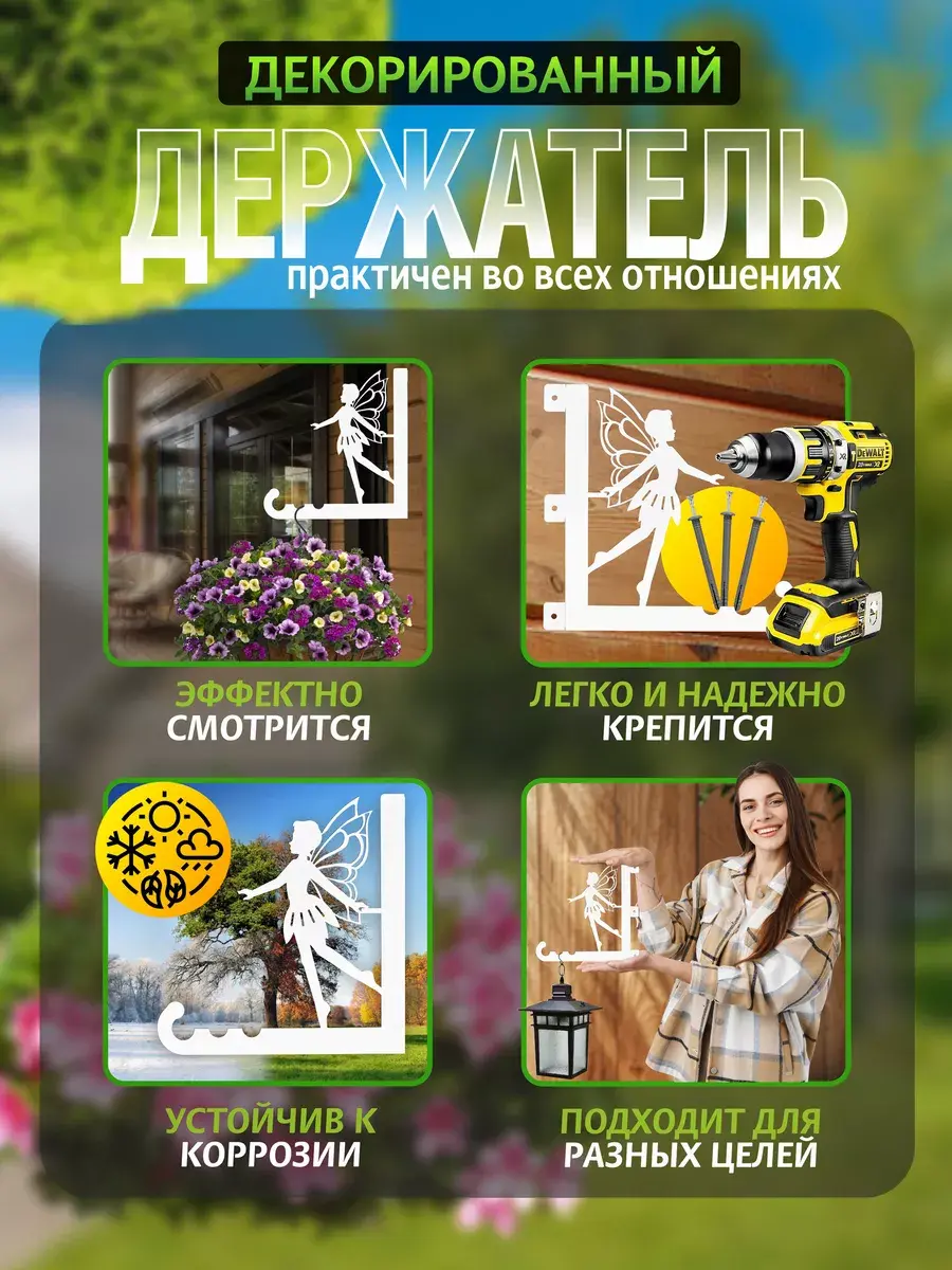 С монтажом держателя для фонаря и цветов справится даже школьник: 3 отверстия под саморезы обеспечивают надежное крепление.