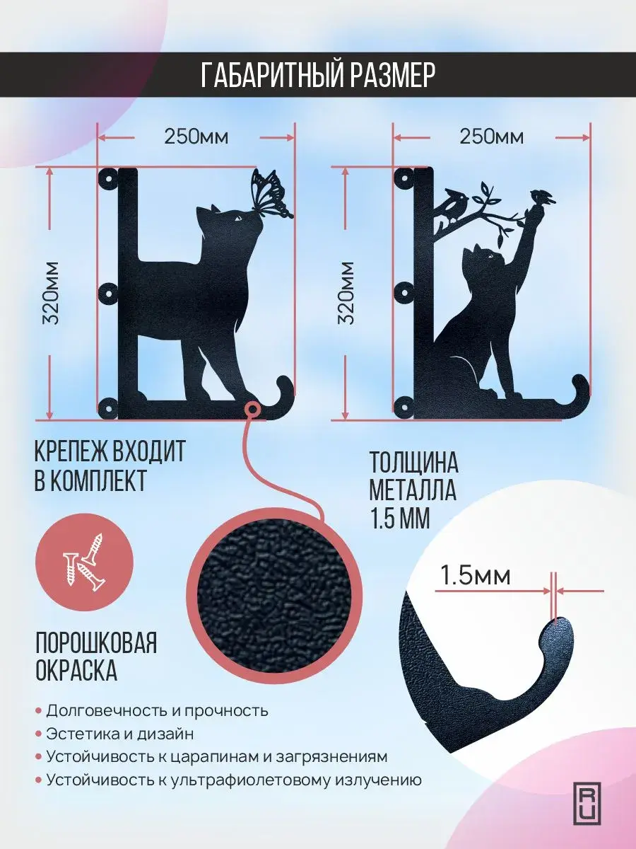 Кронштейны для кашпо "Два кота" от ЭКОГРУПП - это стильное и практичное решение для оформления вашего сада, балкона или террасы. Набор из двух кронштейнов белого цвета, выполненных из прочного и долговечного материала, позволит вам создать уютную атмосферу и добавить изюминку в дизайн вашего пространства. Кронштейны "Два кота" идеально подходят для подвешивания кашпо с цветами, травами или декоративными растениями. Благодаря оригинальному дизайну в виде забавных котиков, они станут не только функциональным, но и декоративным элементом вашего интерьера. Легко монтируются на стену, забор или балконное ограждение, создавая уютный уголок для вашего зеленого друга. Кронштейны "Два кота" - это отличный выбор для тех, кто ценит красоту, практичность и оригинальность.