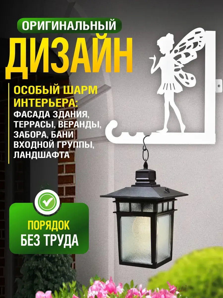 С монтажом держателя для фонаря и цветов справится даже школьник: 3 отверстия под саморезы обеспечивают надежное крепление, а 3 варианта подвеса — свободу выбора.