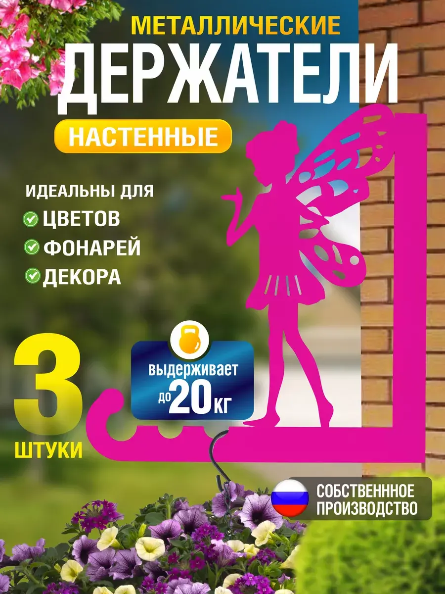 Выбирайте эффектные и функциональные украшения для дома и дачи. Металлический настенный держатель для кашпо добавит удобство и выразительность экстерьеру и интерьеру. Комплект держателей: