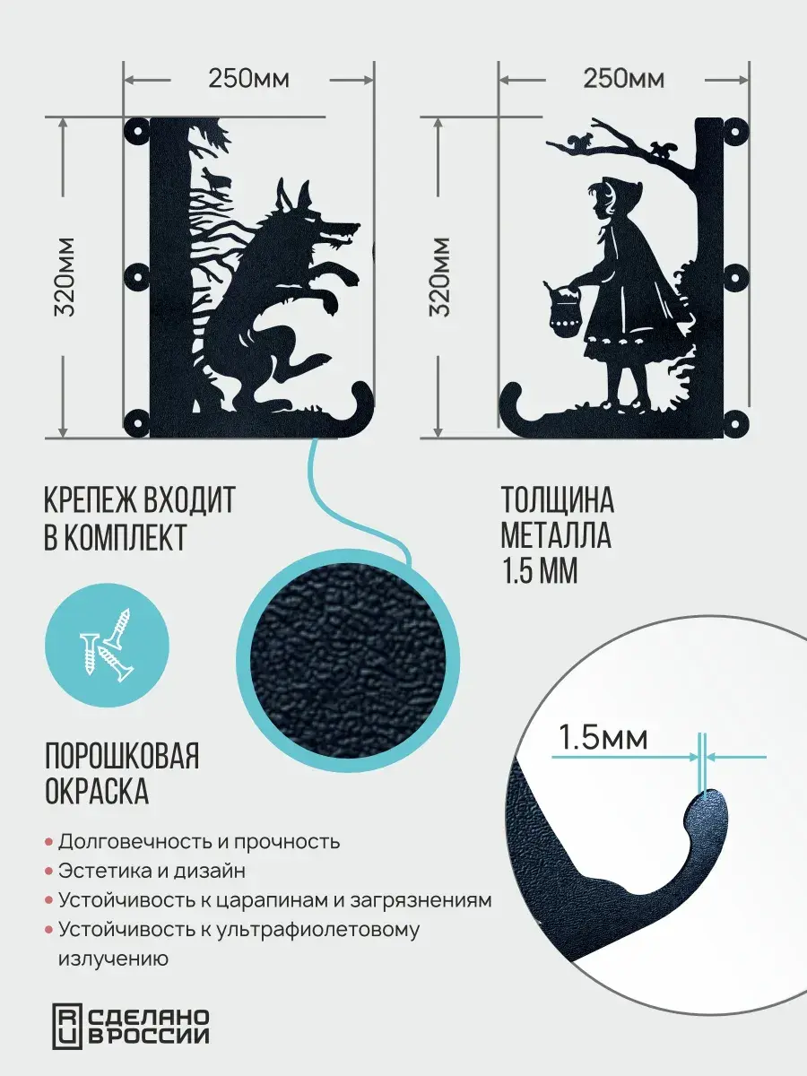 Кронштейны для кашпо Красная шапочка и Волк 2 шт черный
