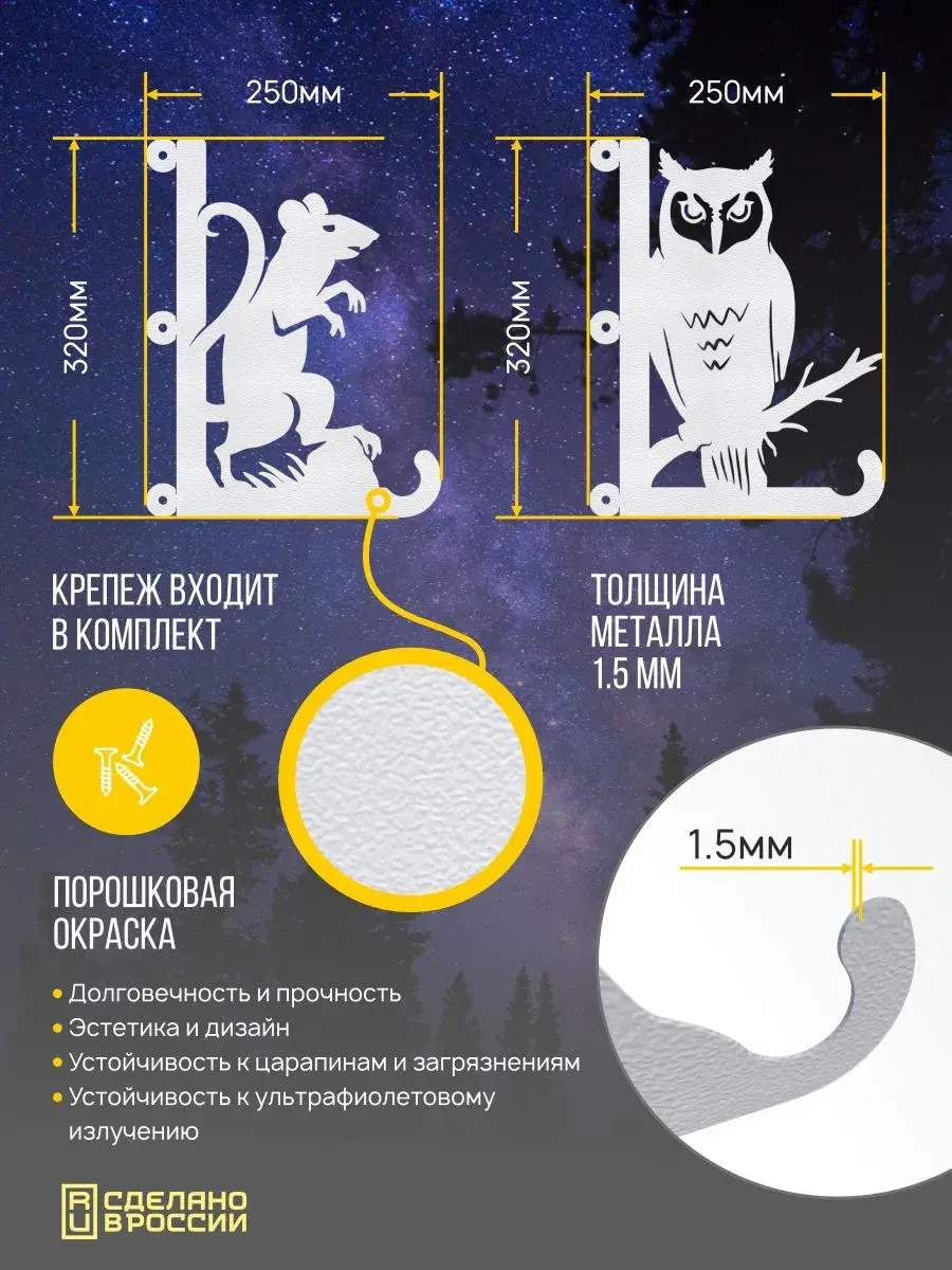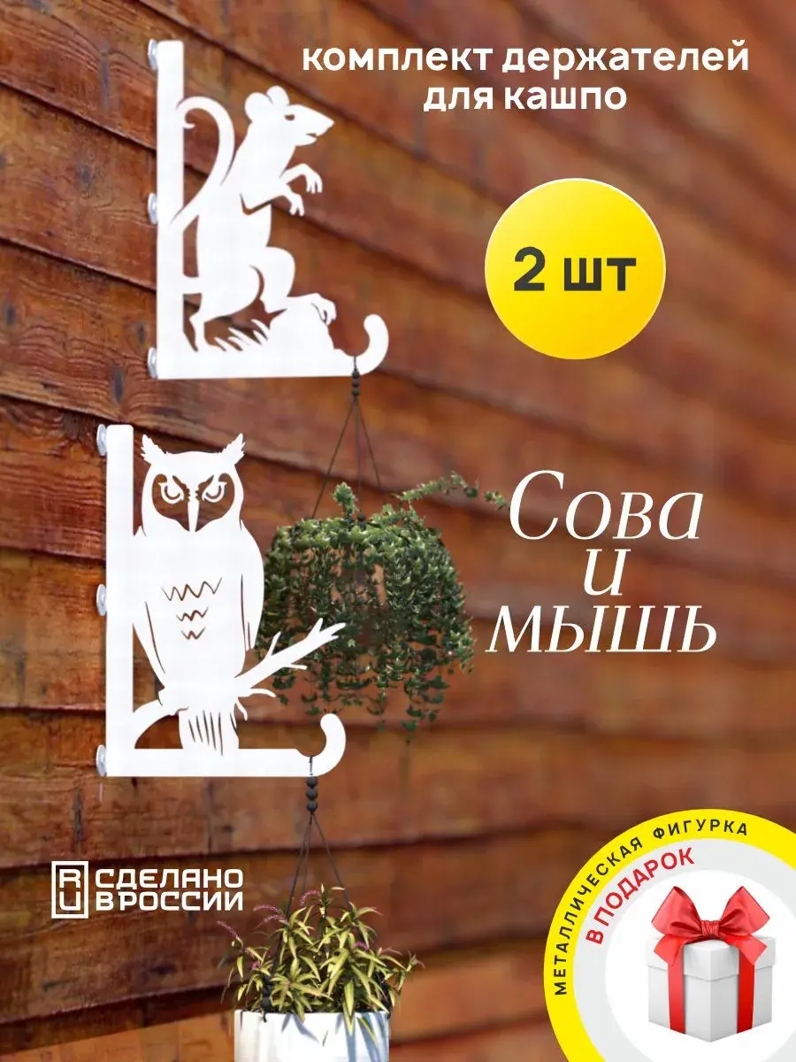 Кронштейны для кашпо Сова и Мышь -2 шт белый