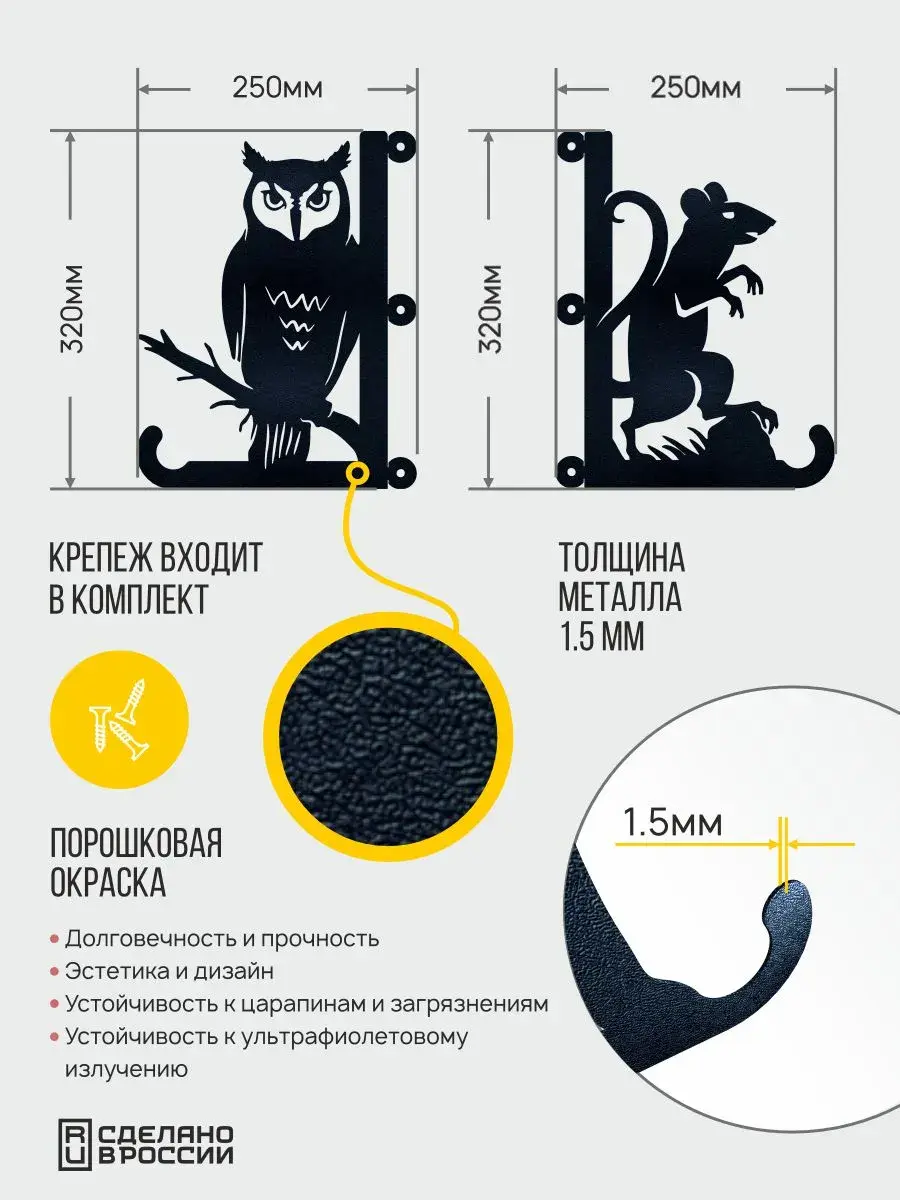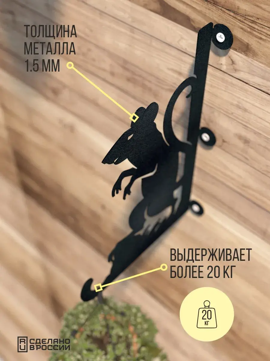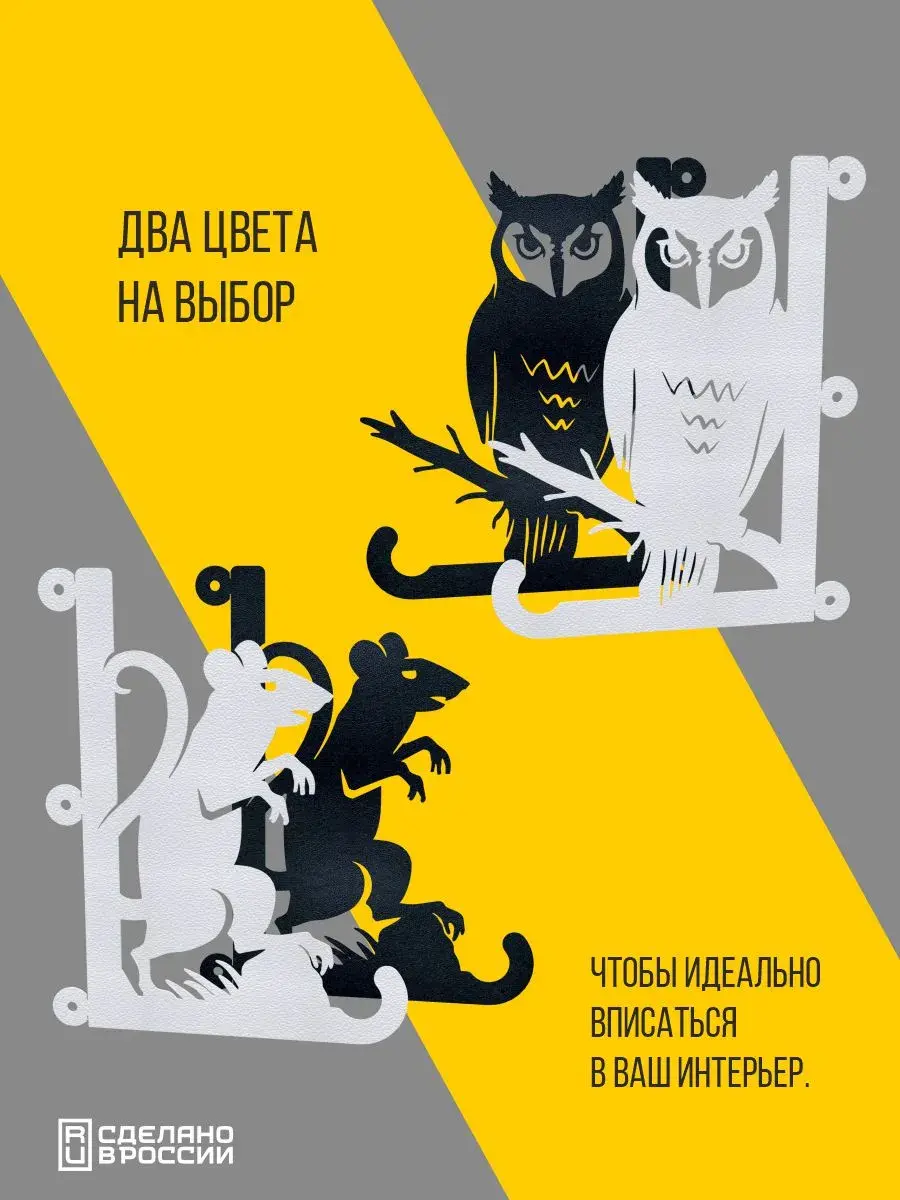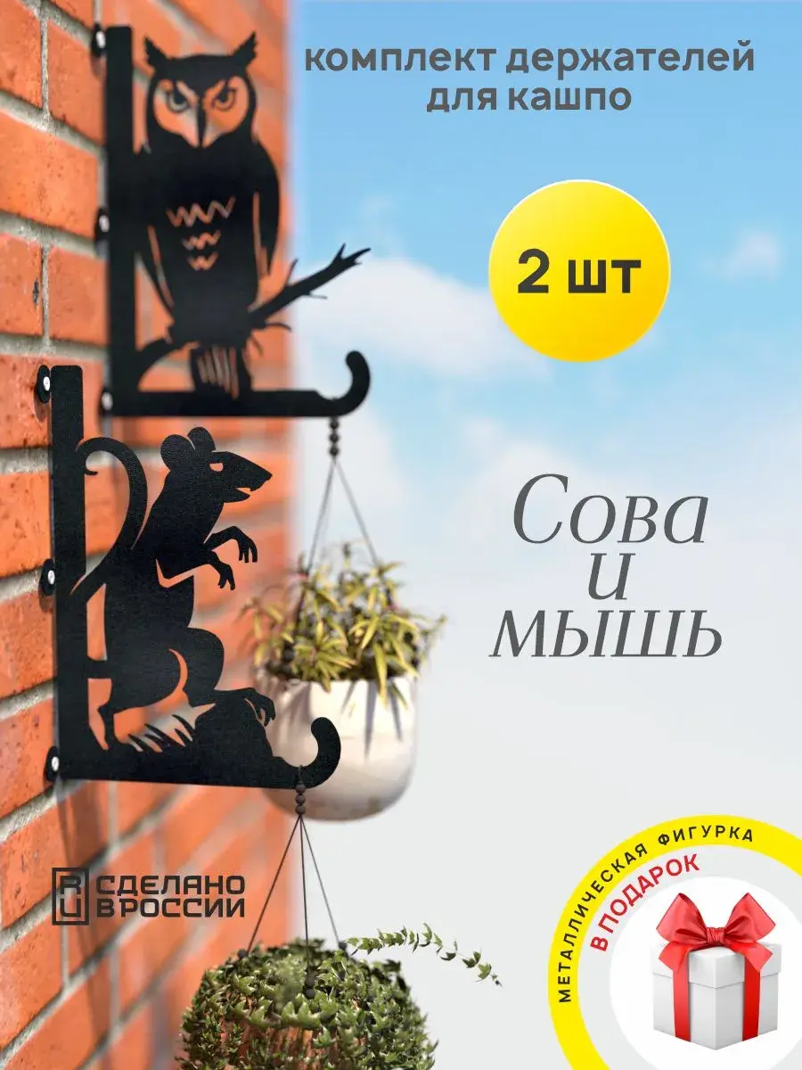 Кронштейны для кашпо Сова и Мышь -2 шт черный