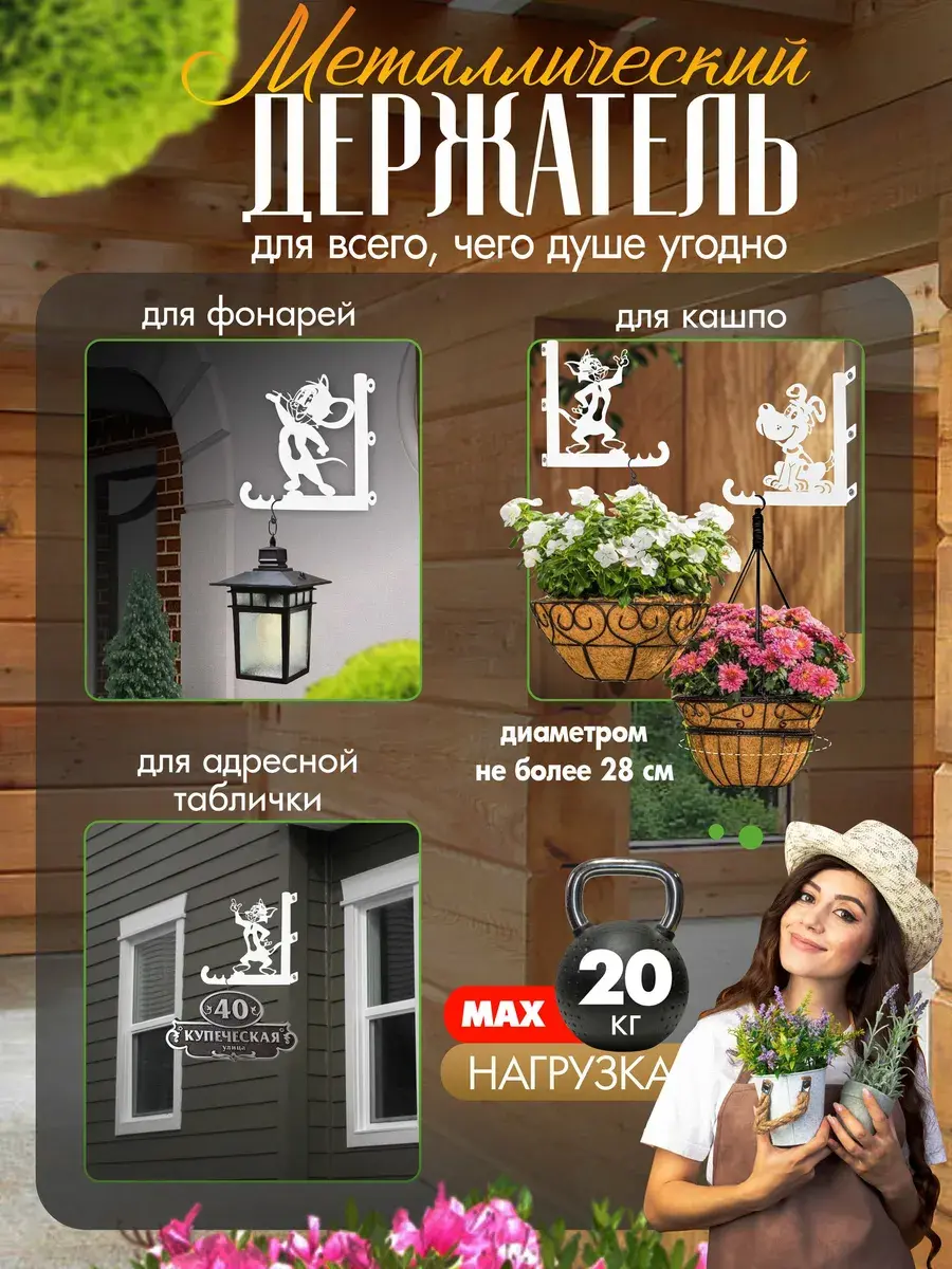 С монтажом держателя для фонаря и цветов справится даже школьник: 3 отверстия под саморезы обеспечивают надежное крепление, а 3 варианта подвеса — свободу выбора.