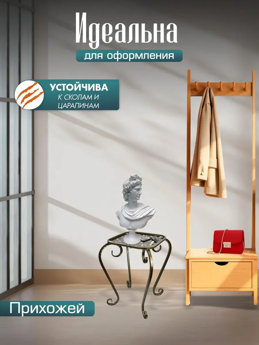 Все модели сделаны из прочного металла и выдерживают большие нагрузки. Рисунок на основании выполнен лазерной резкой. Порошковая краска защищает изделия от царапин и ржавчины, вздутий и выцветания. Даже через годы они будут как новые. Это не просто украшение интерьера, а функциональный и надежный помощник.