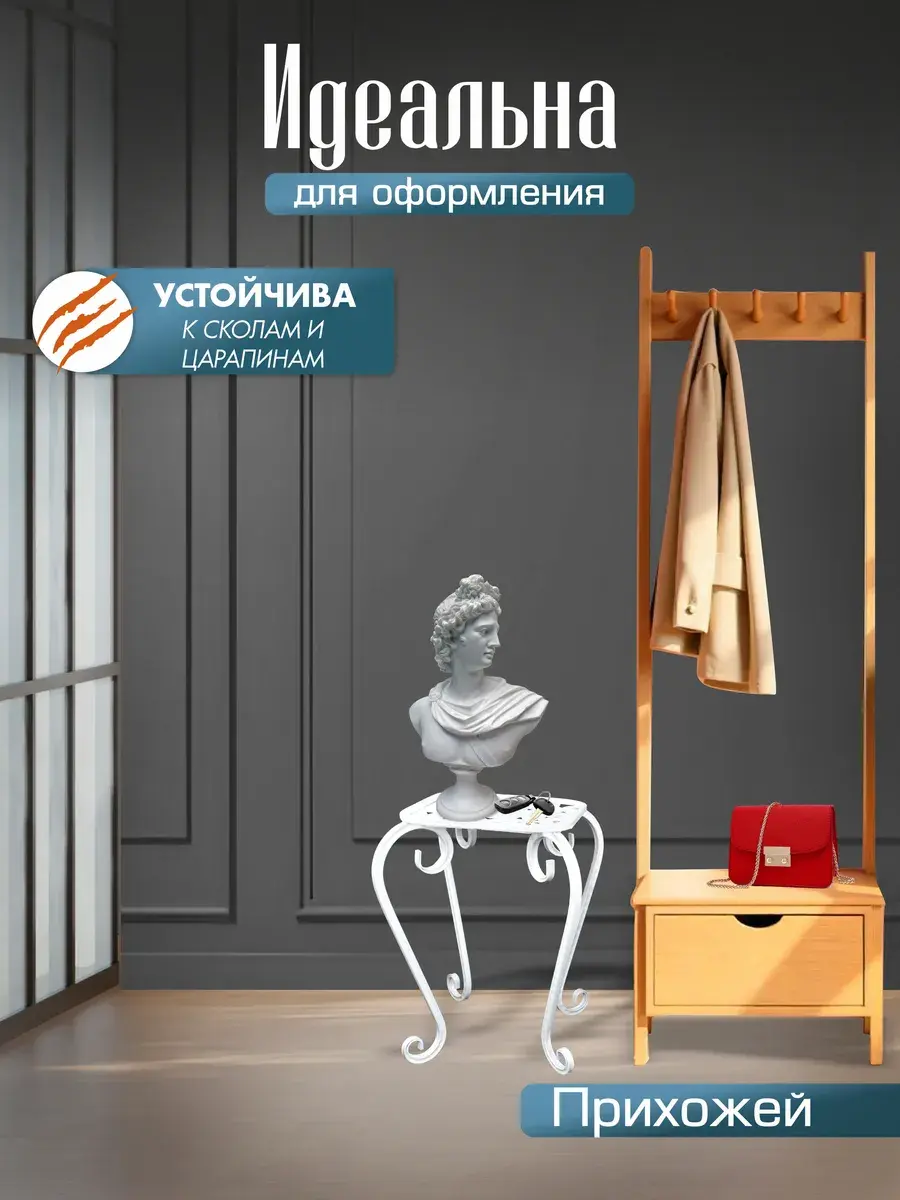 Все модели сделаны из прочного металла и выдерживают большие нагрузки. Рисунок на основании выполнен лазерной резкой. Порошковая краска защищает изделия от царапин и ржавчины, вздутий и выцветания. Даже через годы они будут как новые. Это не просто украшение интерьера, а функциональный и надежный помощник.