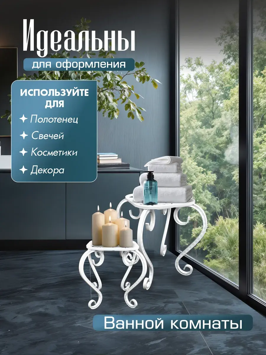 Это напольные подставки для цветов и не только. На них будут гармонично смотреться различные предметы интерьера. Такие подставки из металла можно расположить в ванной, столовой, гостиной или в прихожей. Они станут выразительным акцентом.