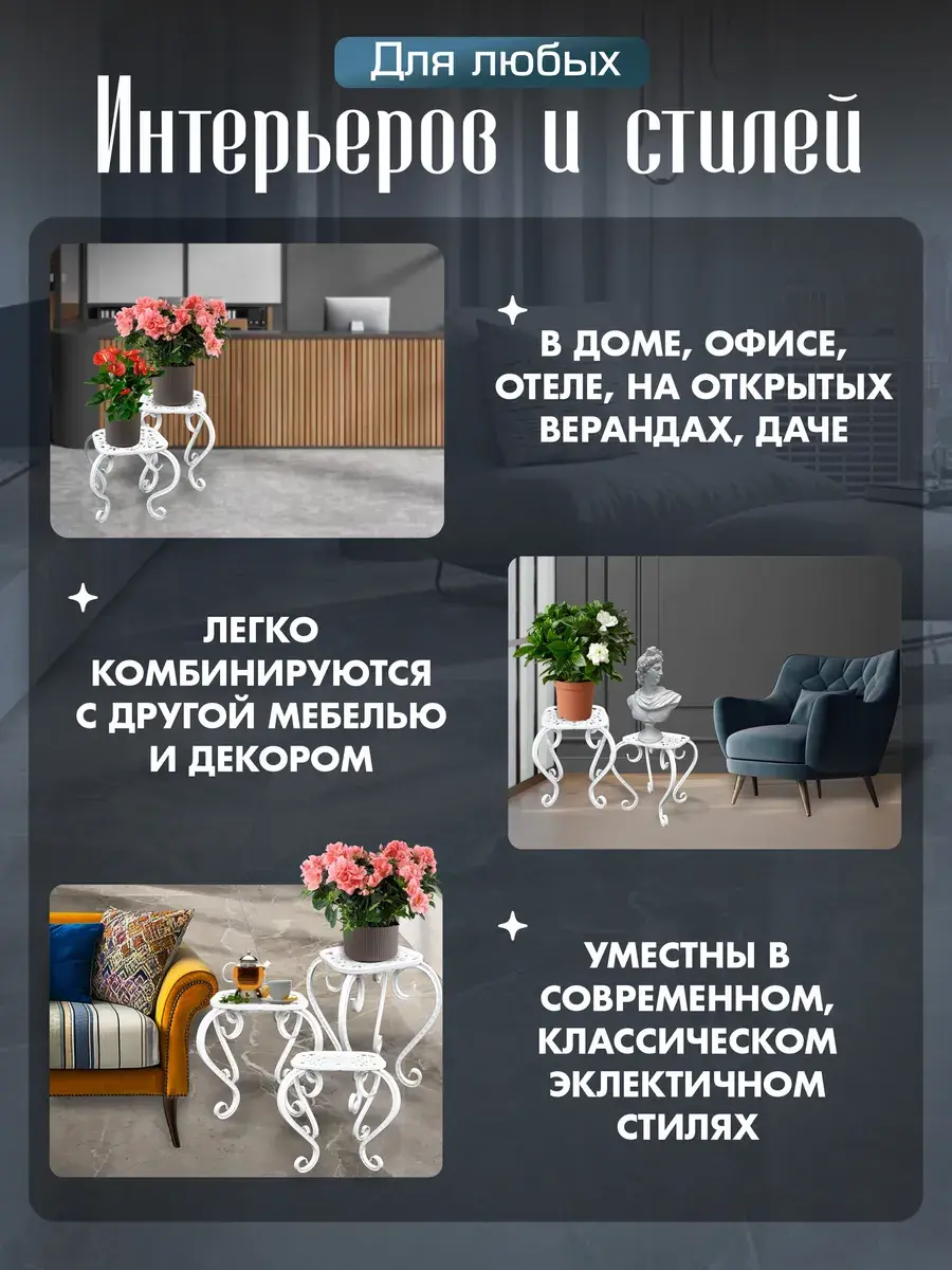 Стойки для цветов станут приятным и полезным подарком на новоселье или к другому событию. Изящные и многофункциональные предметы интерьера понравятся всем, кто хочет создать изысканную и комфортную атмосферу.
