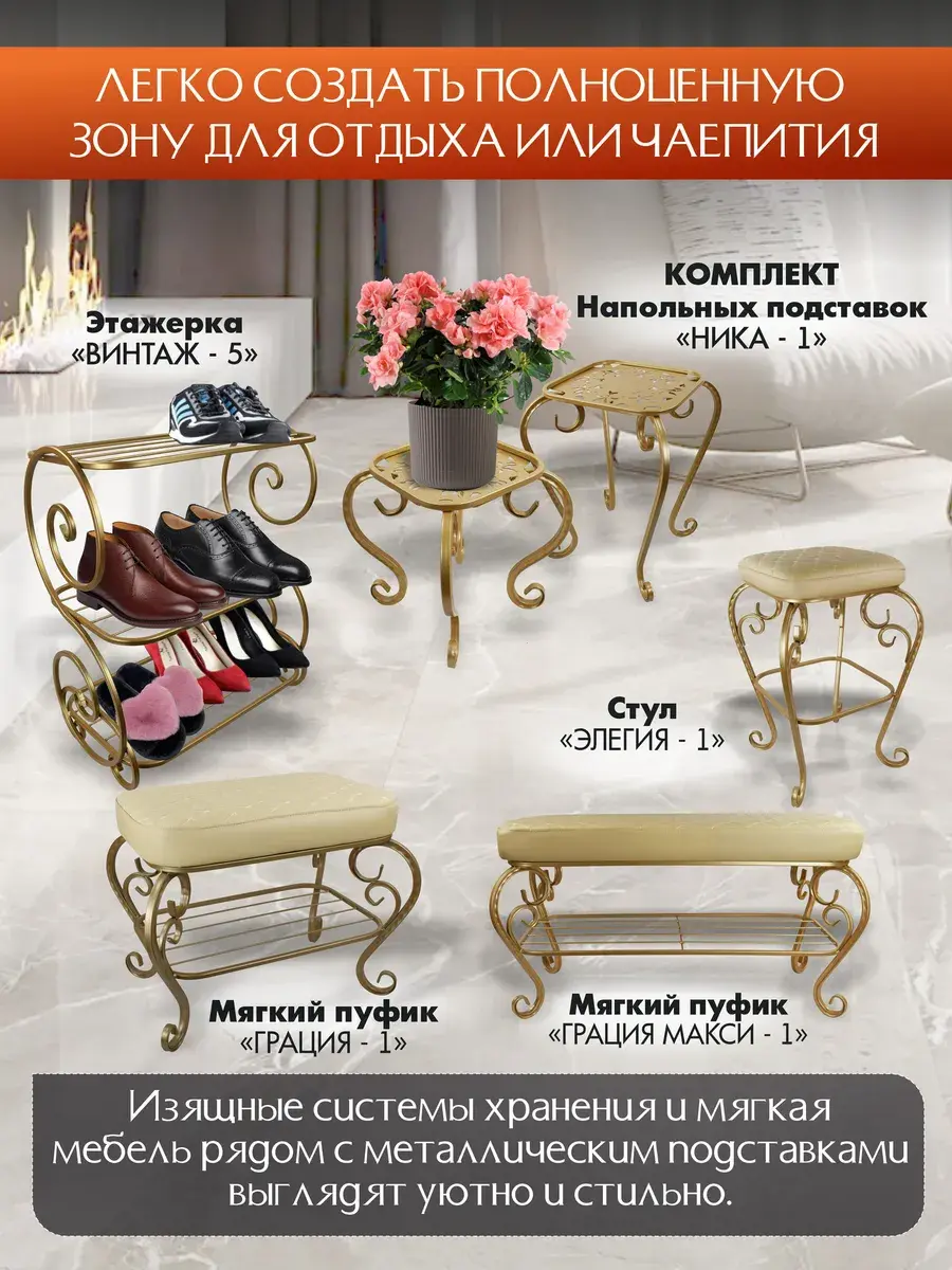Добавьте стильные акценты в интерьер с винтажной мебелью для дома от «ЭКОГРУПП». Подставки для цветов подойдут и как самостоятельный элемент, и в комбинации с другими изделиями производителя. Смотрите каталог, выбирайте и заказывайте.