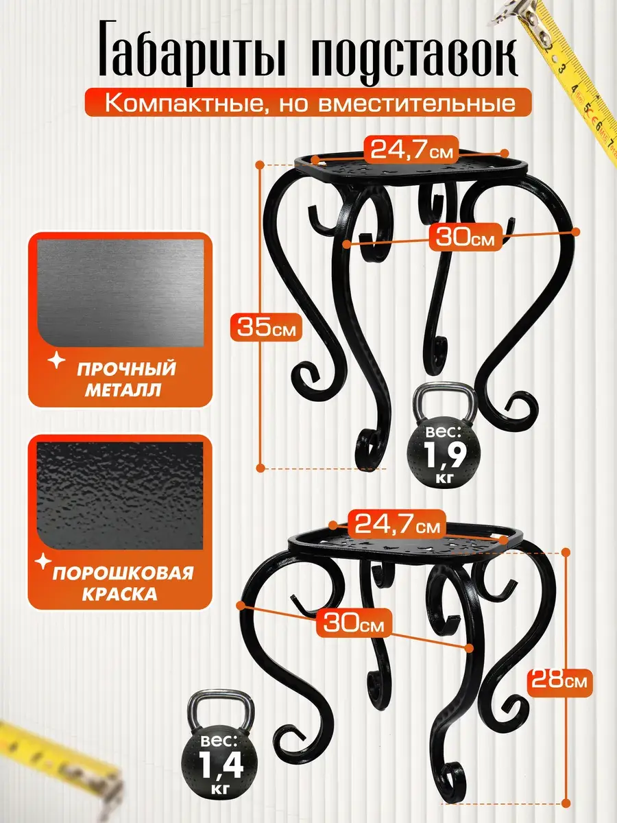 Все модели сделаны из прочного металла и выдерживают большие нагрузки. Рисунок на основании выполнен лазерной резкой. Порошковая краска защищает изделия от царапин и ржавчины, вздутий и выцветания. Даже через годы они будут как новые. Это не просто украшение интерьера, а функциональный и надежный помощник.