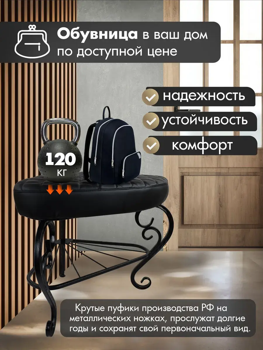 Мягкое сиденье – комфортная поверхность делает процесс обувания приятным, а прочная обивка устойчива к износу.
