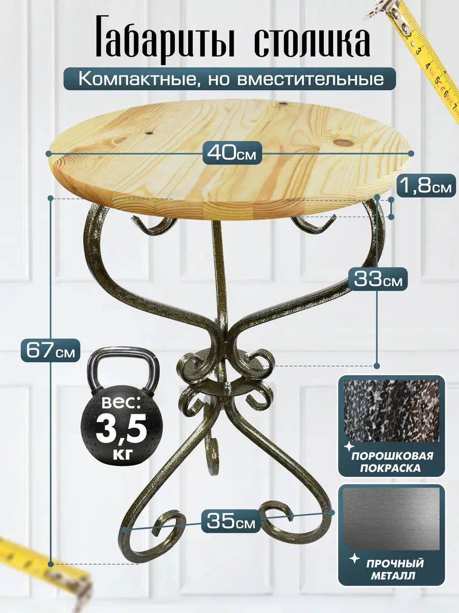 Столешница сделана из натуральной древесины. Она гладкая, приятная на ощупь, эффектная. Натуральный оттенок дерева добавляет уюта и тепла, а прочность материала гарантирует, что разборный столик будет служить долго. Ухаживать за ним просто — достаточно протереть влажной тряпкой. А съемную столешницу можно использовать как поднос. При желании вы можете заменить ее на любую другую.