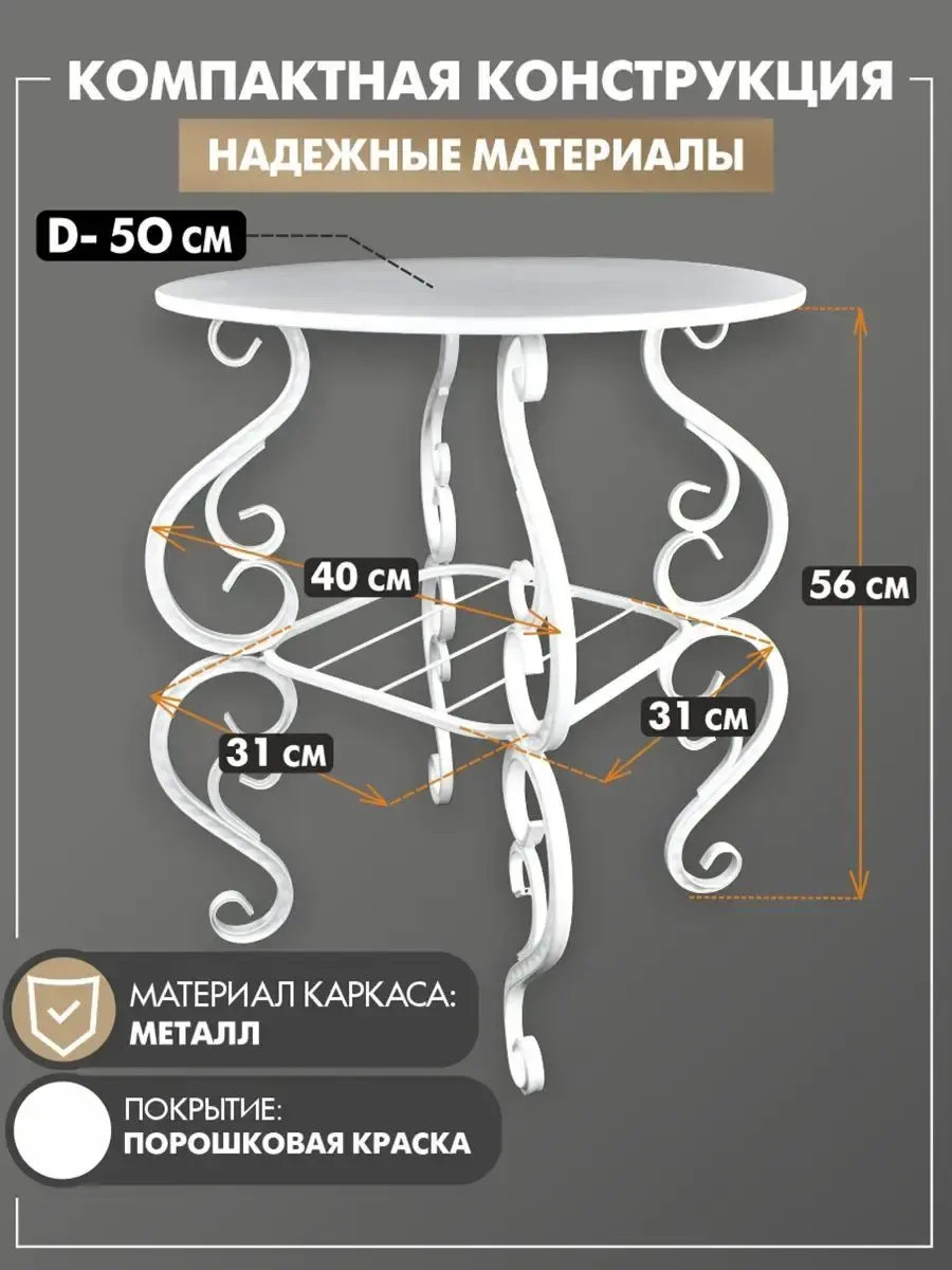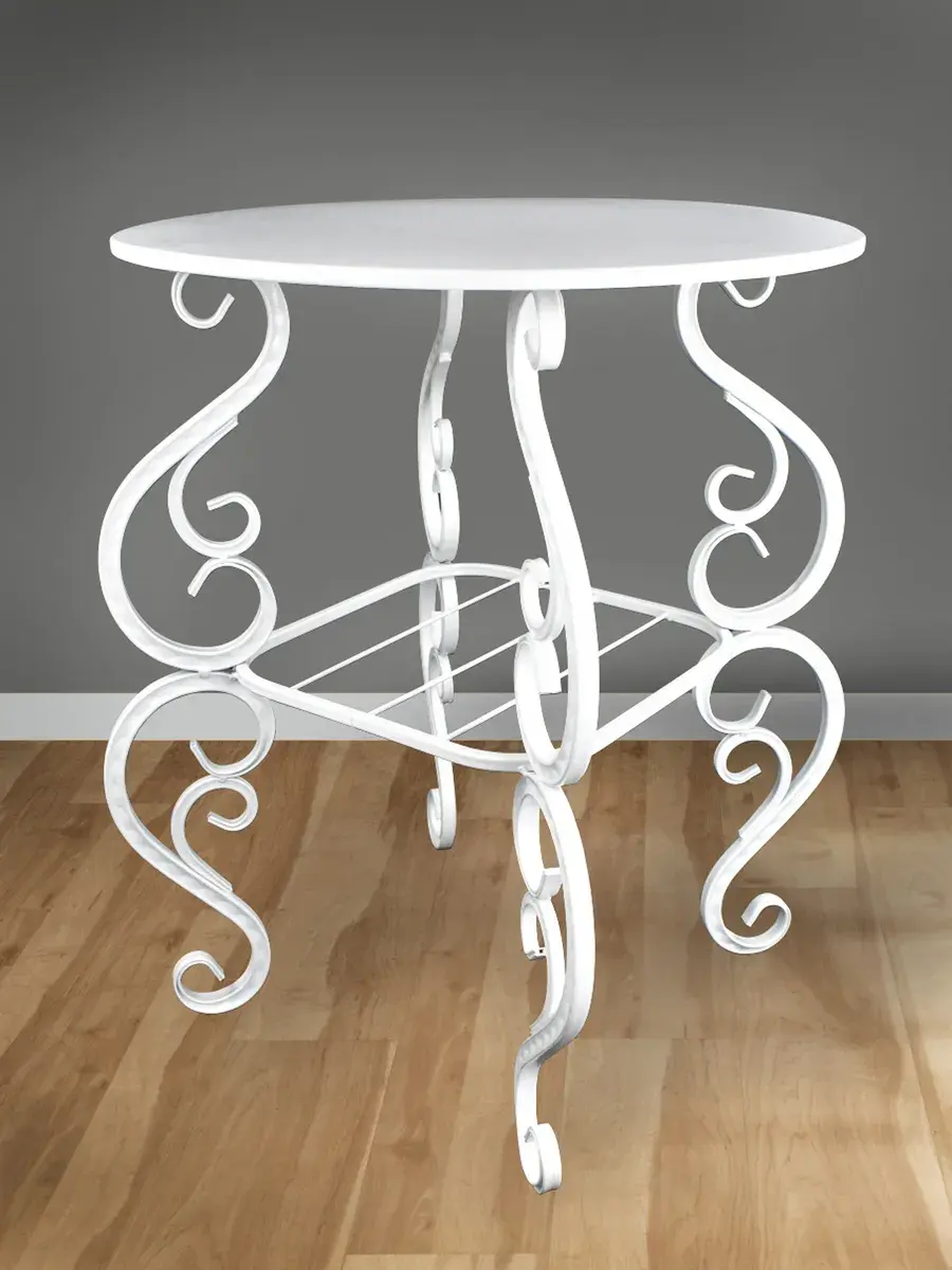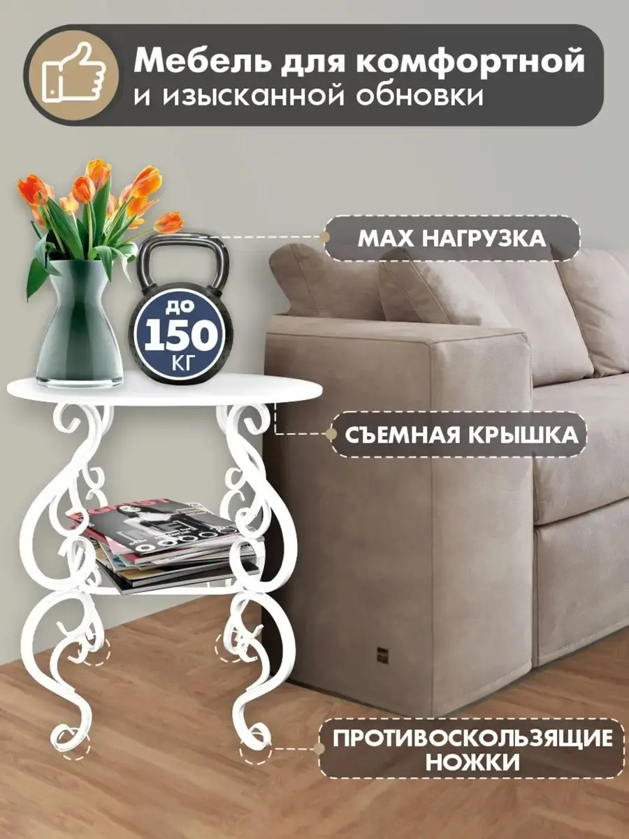 Компактный и функциональный, этот столик идеально впишется в гостиную, кухню или спальню. Его круглая форма позволяет легко разместить его даже в небольшом пространстве. На столешнице можно удобно расположить книги, журналы или посуду.