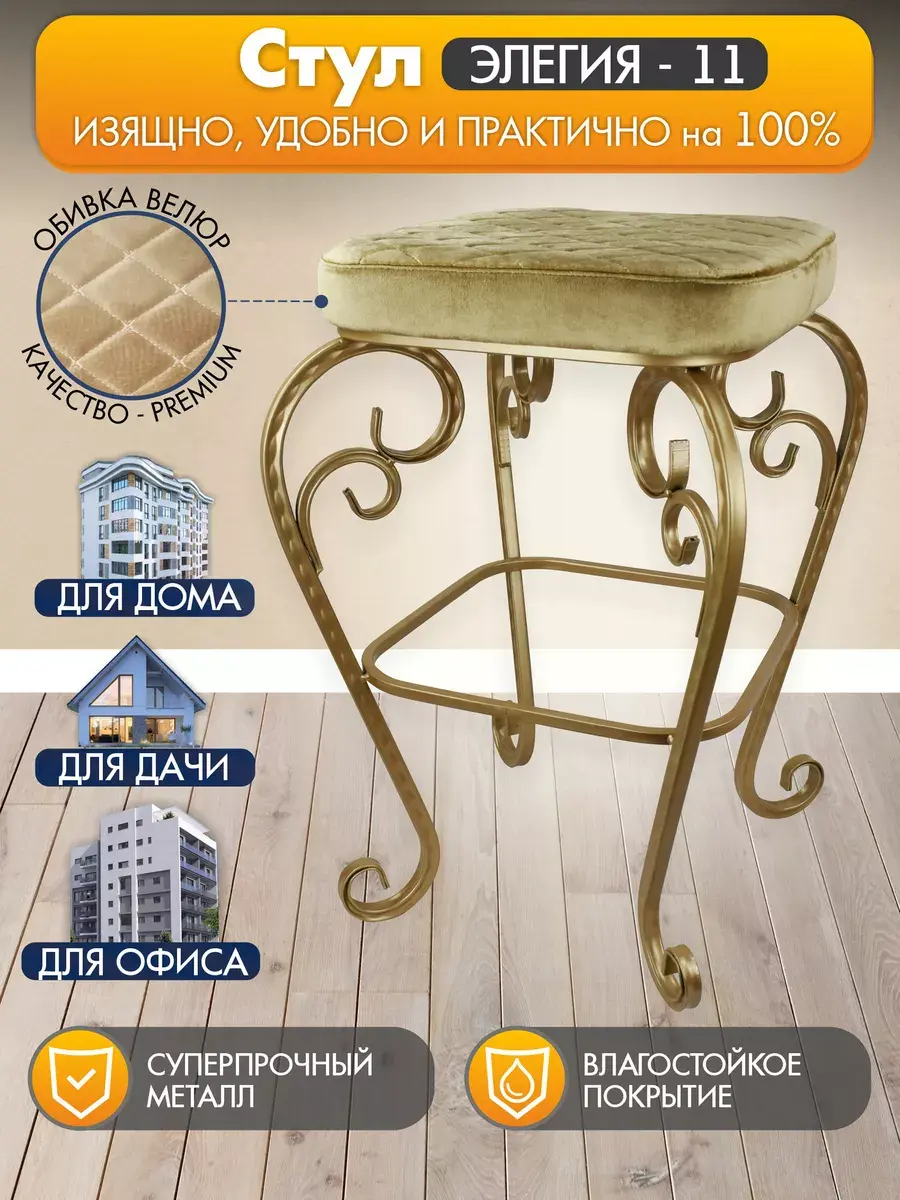 Стул «Элегия-11» от ЭКОГРУПП – это идеальное дополнение к вашему интерьеру, сочетающее в себе уникальный винтажный стиль и комфорт. Изготовленный из высококачественного металла, велюра и ЛДСП, этот стул не только выглядит роскошно, но и предлагает непревзойденный комфорт. Обивка из мягкого велюра обеспечивает приятное прикосновение к коже, а стиль шебби-шик добавляет уют и элегантность вашему пространству. Благодаря отсутствию необходимости в сборке, стул «Элегия-11» готов к использованию сразу после приобретения, делая его идеальным выбором для тех, кто ценит красоту и удобство без лишних затрат времени.