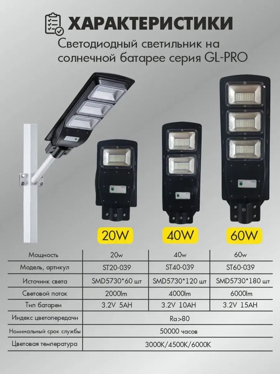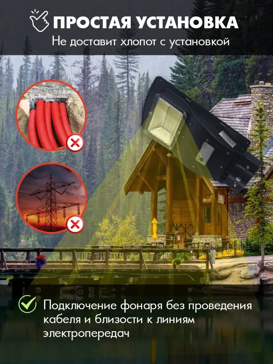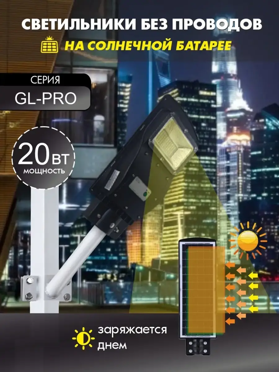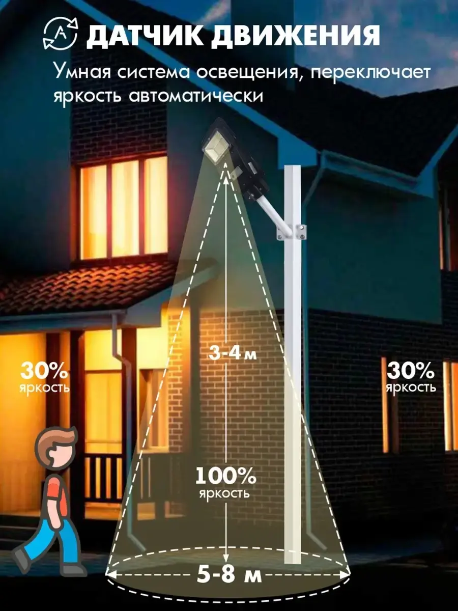 Кронштейн в комплект не входит!! Светодиодный фонарь на солнечной батарее для освещения улицы, шоссе, сада, площади или любого другого места на открытом воздухе- Экологичность. Солнечная энергия - природный неиссякаемый ресурс. Его выработка безопасна для окружающей среды- Финансовая выгода. Нет дополнительных трат на оплату счетов за электроэнергию, прокладку кабеля и монтаж оборудования.- Автоматический запуск. Датчики освещенности регулируют работу фонаря, включая при наступлении сумерек и переводя в режим накопления энергии днем.- Водонепроницаемость. Система адаптирована к работе в российском климате, герметичный корпус защищает от осадков и аномальных температур.- Простая установка. Подключение фонаря без проведения кабеля и близости к линиям электропередач.- Лаконичный внешний вид беспроводной системы освещения дополняет идею дизайна наружного пространства. Мягкий свет фонаря создает комфортные условия для передвижения по улице в темное время суток.Внимание ! Кронштейн в комплект не входит!!