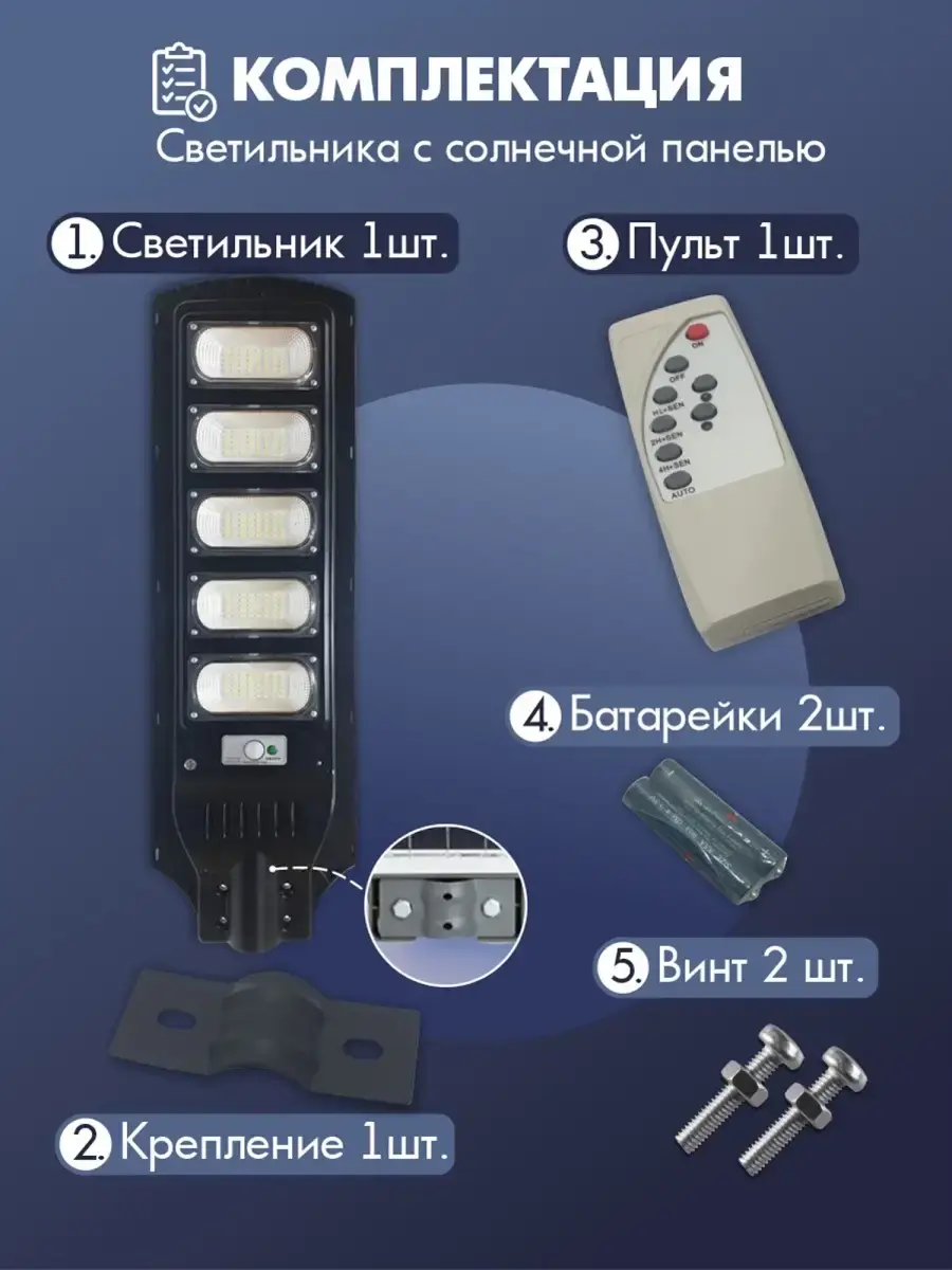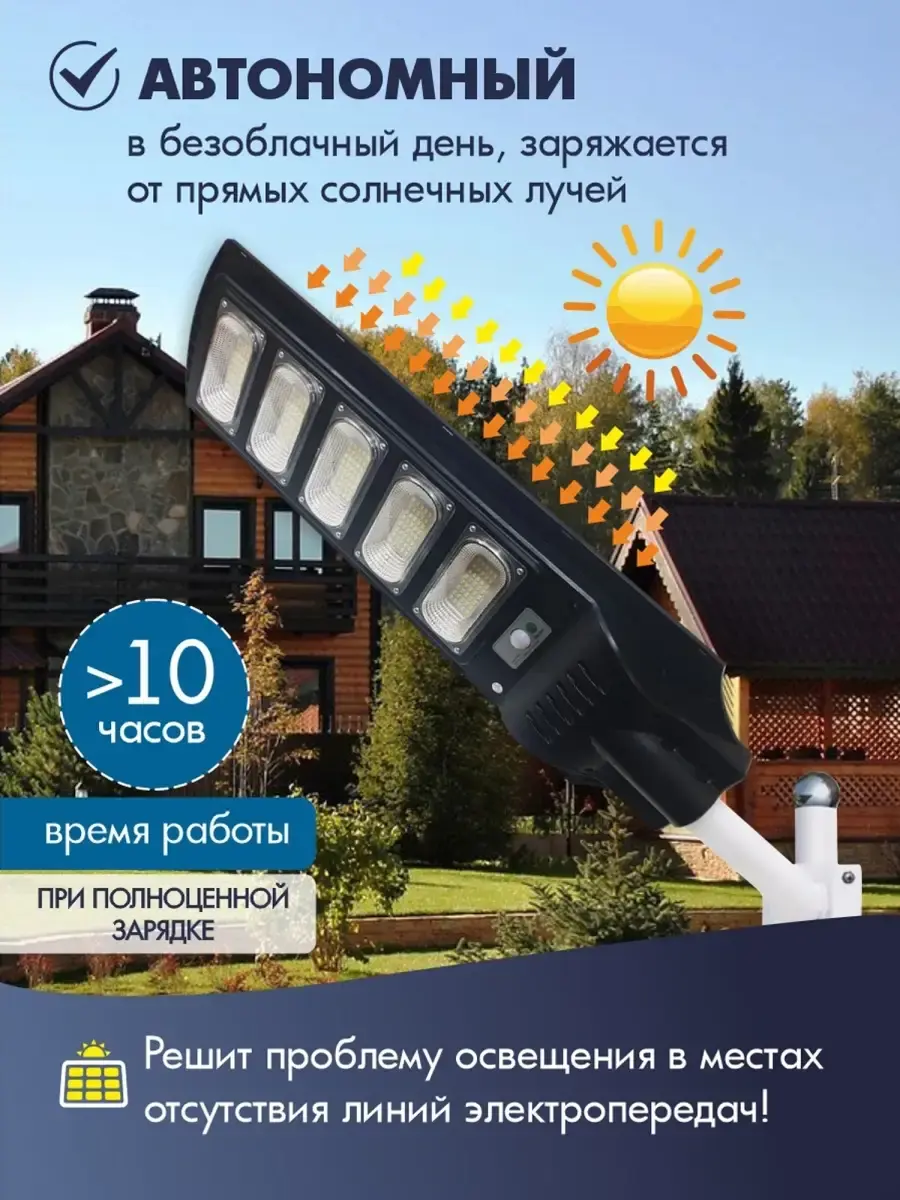 - Перед использованием необходимо зарядить фонарь на солнце, предварительно включить кнопку на нём, зелёный или синий свет на лампочке включения говорит о том , что светильник заряжается. После полной зарядки и установки на кронштейн дальнейшая зарядка не требуется, светильник будет днём заряжаться, а ночью гореть. В нём встроен датчик движения и при приближении человека загорается на 100 процентов, когда человек отходит, яркость работы лампы переходит в режим сохранения и становится 30 процентов от максимальной. Также можно на пульте установить постоянное горение в 100 процентов, но время разрядки сократится. Если возникли вопросы задайте их при покупке.- Светодиодный фонарь на солнечной батарее для освещения улицы, шоссе, сада, площади. Автоматический запуск. Датчики освещенности регулируют работу фонаря, включая при наступлении сумерек, Внимание ! Кронштейн в комплект не входит!!