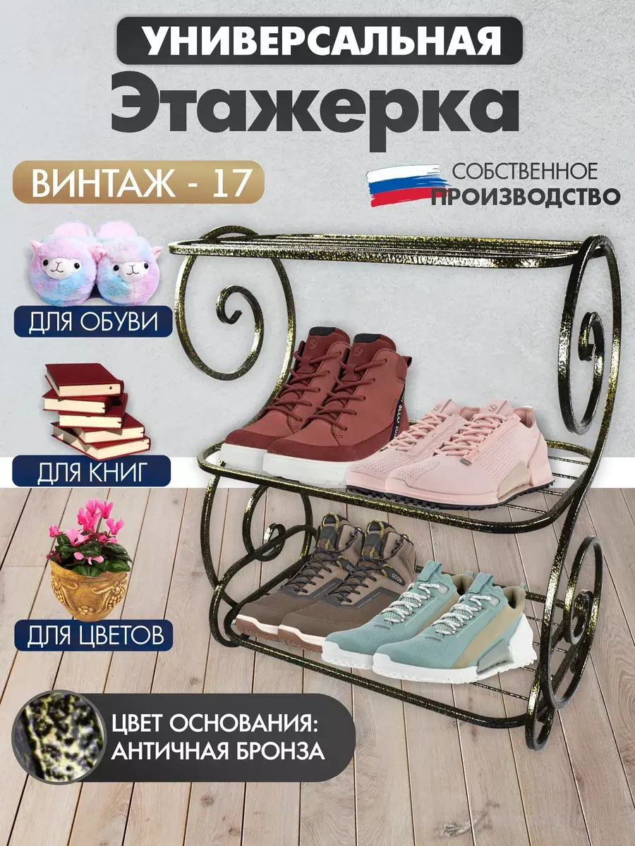 Эта металлическая этажерка для обуви обеспечивает удобный доступ к вашей обуви, сохраняя ее в порядке и защищая от пыли. Она легко собирается и устанавливается, благодаря чему вы сможете быстро насладиться ее преимуществами. Кроме того, она стильно дополнит ваш интерьер, добавив нотку винтажности и элегантности.