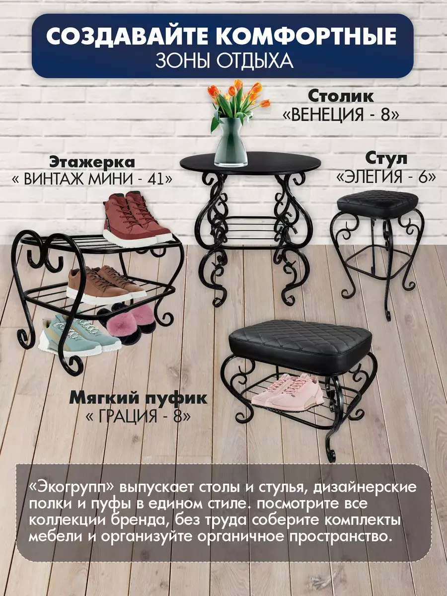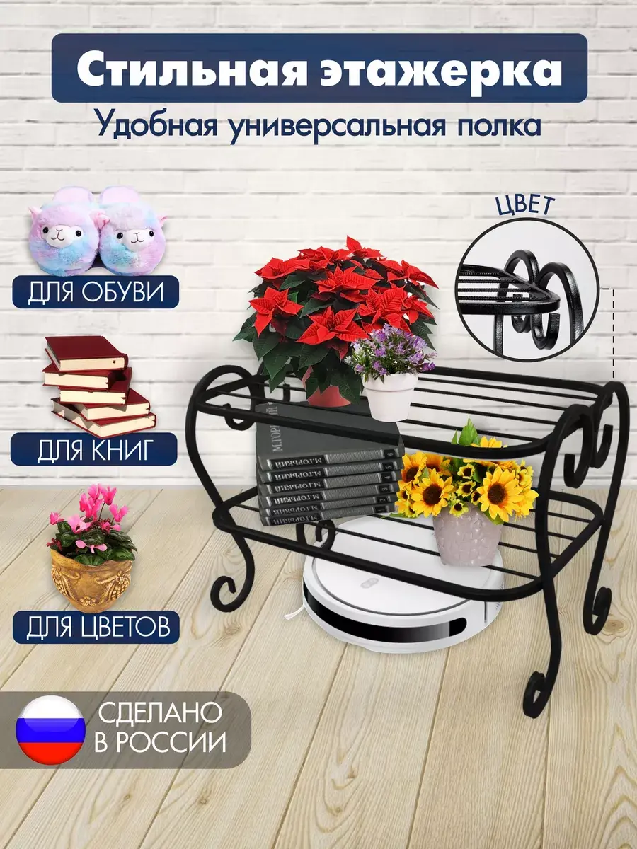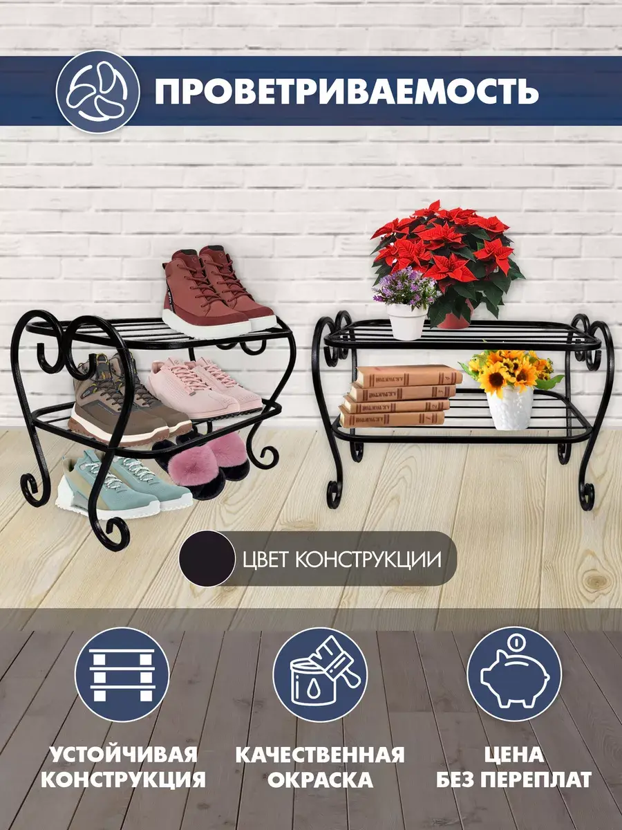 Универсальная этажерка - идеальное решение для организации пространства в вашей прихожей или коридоре. Эта элегантная и стильная мебель изготовлена из прочного металла и окрашена порошковой краской, что придает ей прочность и долговечность.У этажерки есть две полочки, которые позволяют удобно разместить вашу обувь, цветы и книги. Она идеально подходит в качестве обувницы в прихожую или как полка для обуви в коридоре. Благодаря своей компактной конструкции, она не займет много места, но при этом предоставит достаточно места для хранения.Эта металлическая этажерка для обуви обеспечивает удобный доступ к вашей обуви, сохраняя ее в порядке и защищая от пыли. Сборка не требуется, благодаря чему вы сможете быстро насладиться ее преимуществами. Кроме того, она стильно дополнит ваш интерьер, добавив нотку винтажности и элегантности.Вы можете использовать эту универсальную этажерку не только для обуви, но и для различных аксессуаров, таких как сумки, шапки или зонты. Она легко используется, как полезный органайзер, помогая вам поддерживать порядок и чистоту в вашей прихожей или коридоре.Будьте уверены в качестве этой мебели, она изготовлена с использованием высококачественных материалов и протестирована на прочность и надежность. Каждая деталь этой этажерки продумана до мелочей, чтобы обеспечить вам максимальный комфорт и удовлетворение от использования.Выбирайте качественную мебель, которая сделает вашу прихожую или коридор более функциональными и привлекательными. Универсальная этажерка для обуви станет отличным решением для организации вашего пространства и создания уютной атмосферы. Позвольте себе наслаждаться порядком и стильным дизайном с этой прекрасной мебелью.