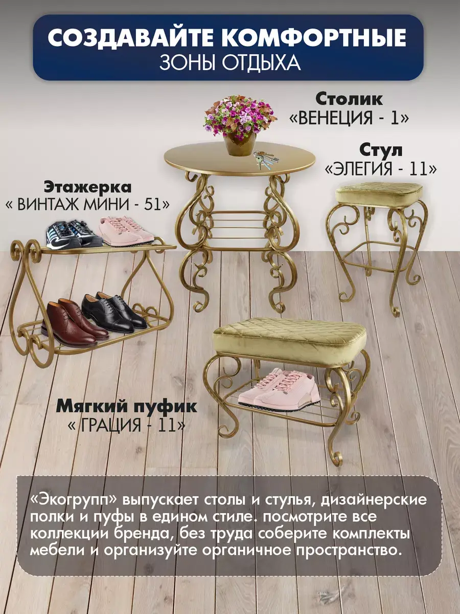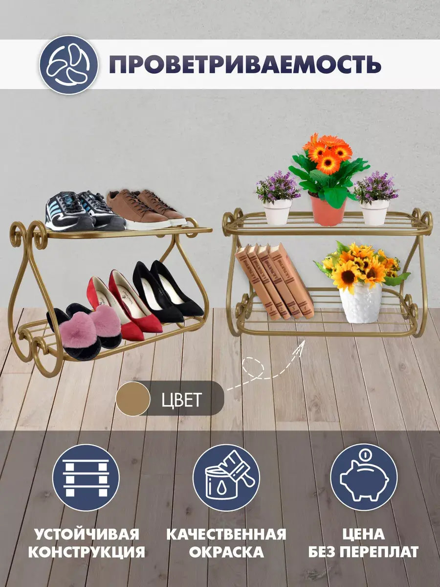 Универсальная этажерка - идеальное решение для организации пространства в вашей прихожей или коридоре. Эта элегантная и стильная мебель изготовлена из прочного металла и окрашена порошковой краской, что придает ей прочность и долговечность.У этажерки есть две полочки, которые позволяют удобно разместить вашу обувь, цветы и книги. Она идеально подходит в качестве обувницы в прихожую или как полка для обуви в коридоре. Благодаря своей компактной конструкции, она не займет много места, но при этом предоставит достаточно места для хранения.Эта металлическая этажерка для обуви обеспечивает удобный доступ к вашей обуви, сохраняя ее в порядке и защищая от пыли. Сборка не требуется, благодаря чему вы сможете быстро насладиться ее преимуществами. Кроме того, она стильно дополнит ваш интерьер, добавив нотку винтажности и элегантности.Вы можете использовать эту универсальную этажерку не только для обуви, но и для различных аксессуаров, таких как сумки, шапки или зонты. Она легко используется, как полезный органайзер, помогая вам поддерживать порядок и чистоту в вашей прихожей или коридоре.Будьте уверены в качестве этой мебели, она изготовлена с использованием высококачественных материалов и протестирована на прочность и надежность. Каждая деталь этой этажерки продумана до мелочей, чтобы обеспечить вам максимальный комфорт и удовлетворение от использования.Выбирайте качественную мебель, которая сделает вашу прихожую или коридор более функциональными и привлекательными. Универсальная этажерка для обуви станет отличным решением для организации вашего пространства и создания уютной атмосферы. Позвольте себе наслаждаться порядком и стильным дизайном с этой прекрасной мебелью.
