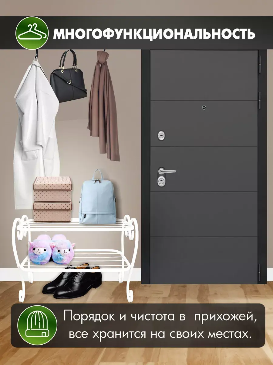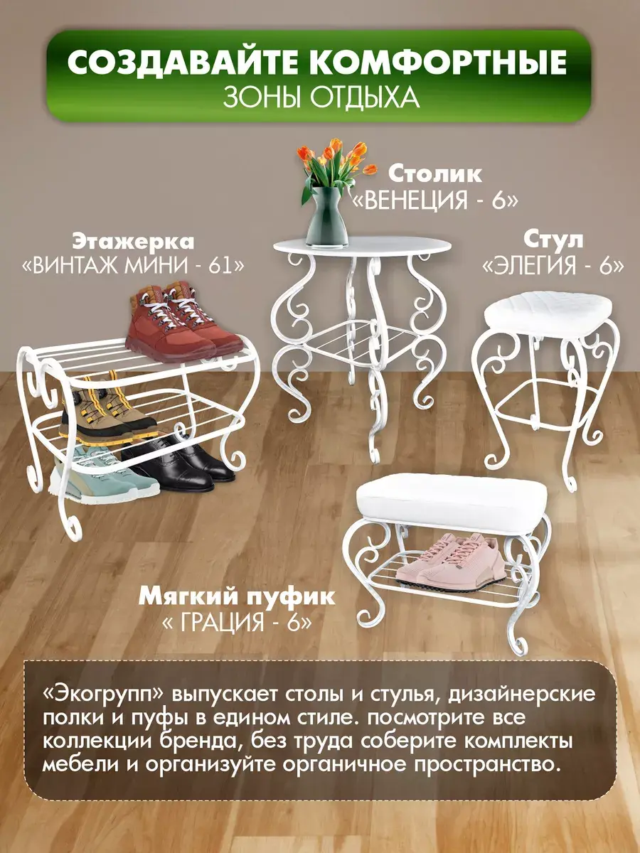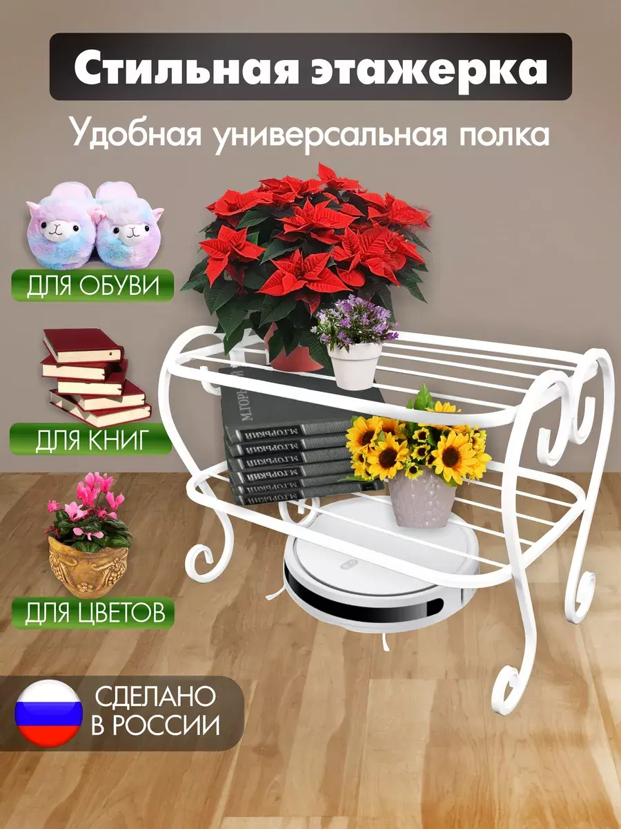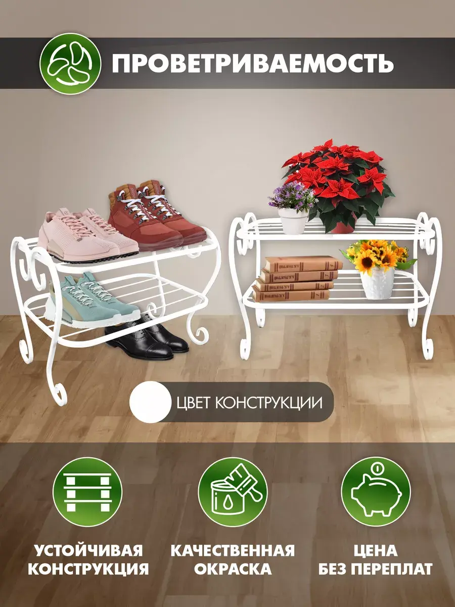 Универсальная этажерка - идеальное решение для организации пространства в вашей прихожей или коридоре. Эта элегантная и стильная мебель изготовлена из прочного металла и окрашена порошковой краской, что придает ей прочность и долговечность.У этажерки есть две полочки, которые позволяют удобно разместить вашу обувь, цветы и книги. Она идеально подходит в качестве обувницы в прихожую или как полка для обуви в коридоре. Благодаря своей компактной конструкции, она не займет много места, но при этом предоставит достаточно места для хранения.Эта металлическая этажерка для обуви обеспечивает удобный доступ к вашей обуви, сохраняя ее в порядке и защищая от пыли. Сборка не требуется, благодаря чему вы сможете быстро насладиться ее преимуществами. Кроме того, она стильно дополнит ваш интерьер, добавив нотку винтажности и элегантности.Вы можете использовать эту универсальную этажерку не только для обуви, но и для различных аксессуаров, таких как сумки, шапки или зонты. Она легко используется, как полезный органайзер, помогая вам поддерживать порядок и чистоту в вашей прихожей или коридоре.Будьте уверены в качестве этой мебели, она изготовлена с использованием высококачественных материалов и протестирована на прочность и надежность. Каждая деталь этой этажерки продумана до мелочей, чтобы обеспечить вам максимальный комфорт и удовлетворение от использования.Выбирайте качественную мебель, которая сделает вашу прихожую или коридор более функциональными и привлекательными. Универсальная этажерка для обуви станет отличным решением для организации вашего пространства и создания уютной атмосферы. Позвольте себе наслаждаться порядком и стильным дизайном с этой прекрасной мебелью.